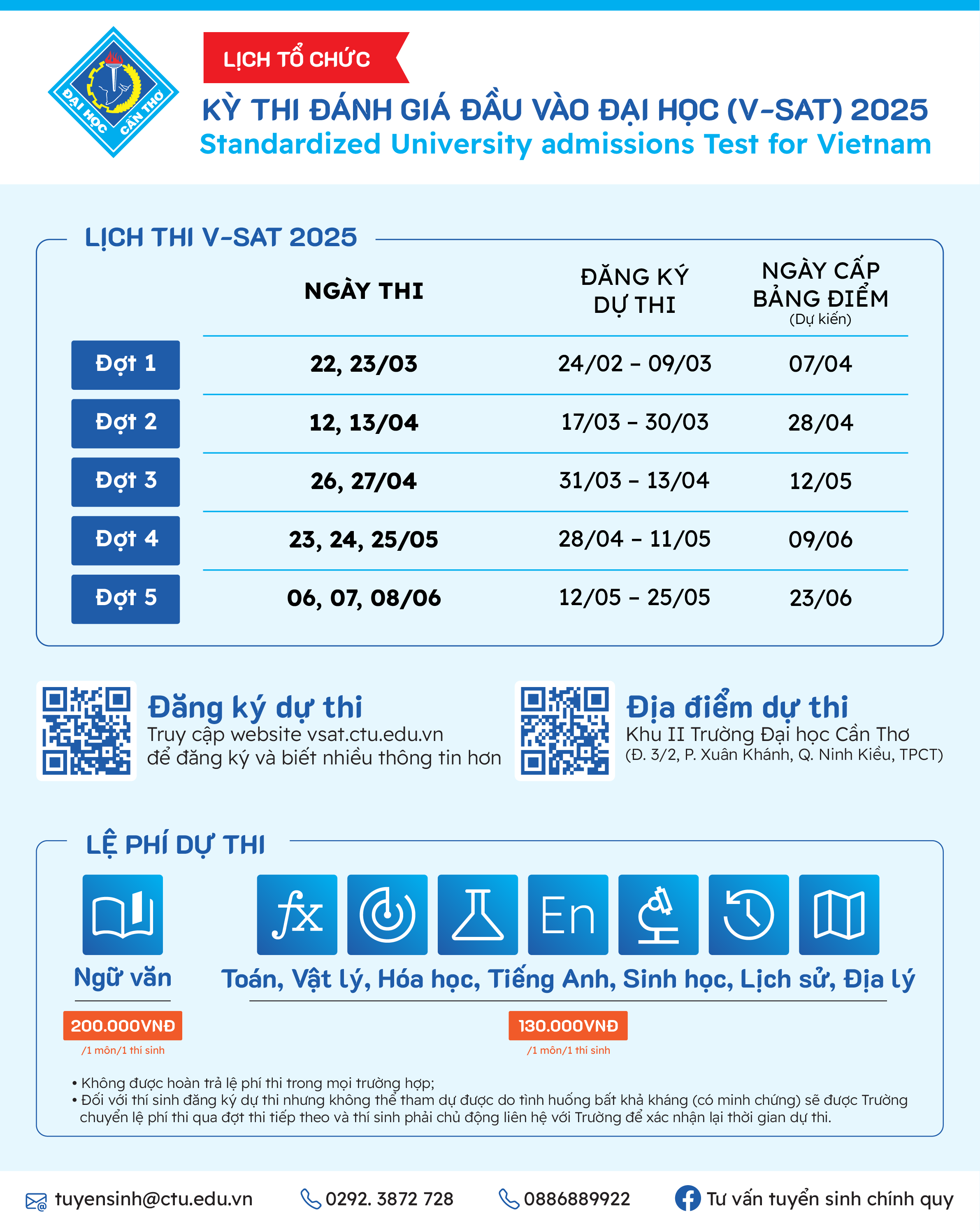 [Infographic] Lịch tổ chức kỳ thi V-SAT năm 2025 tại Trường Đại học Cần Thơ