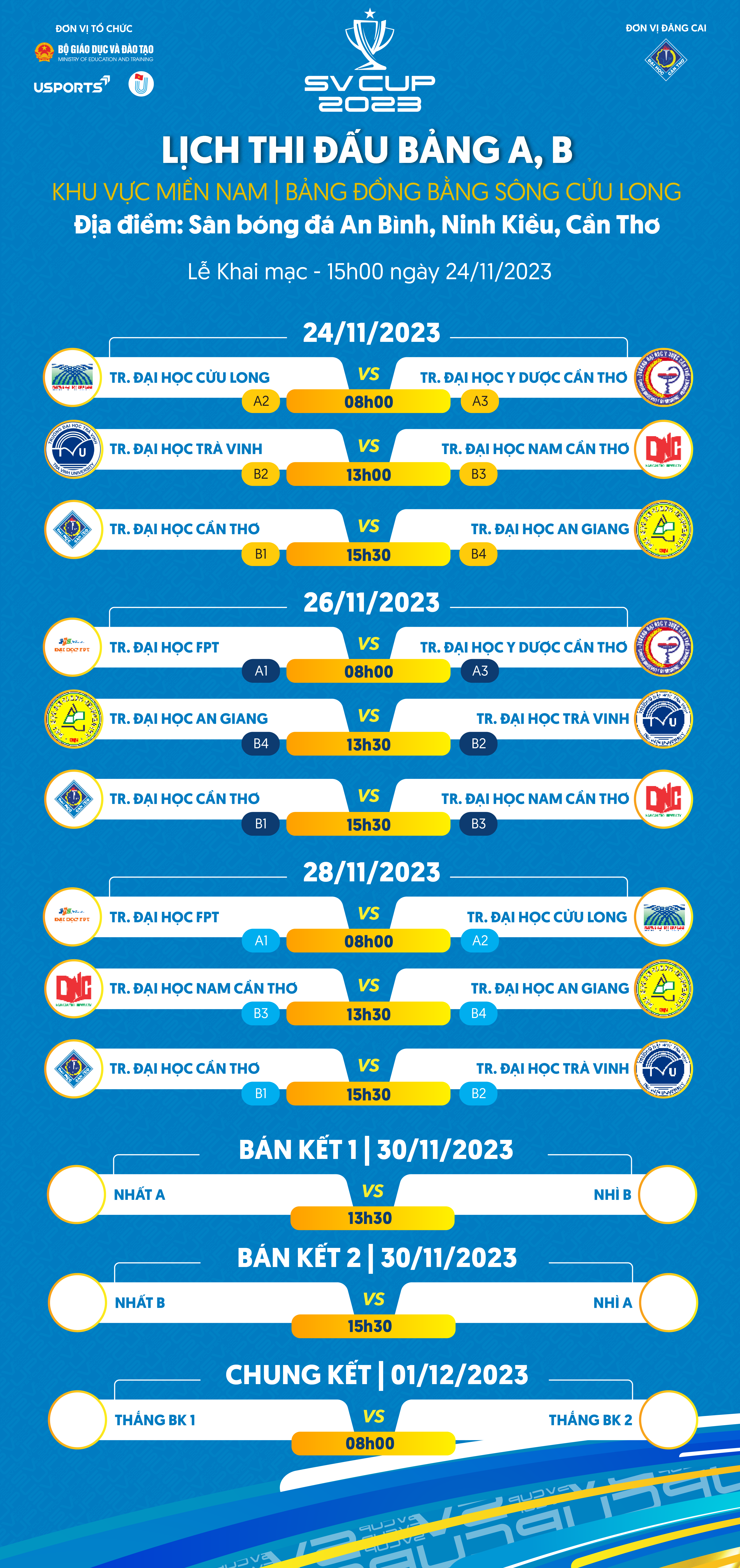 Lịch thi đấu giải bóng đá sinh viên SV Cup năm 2023