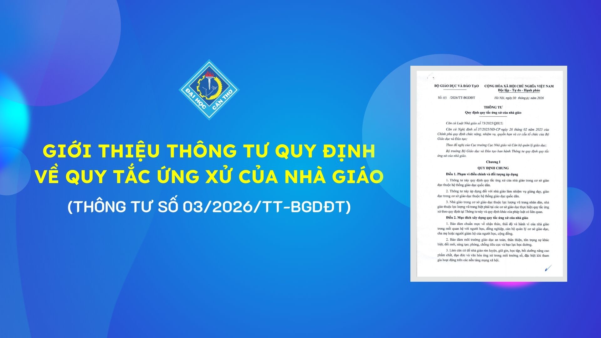 Đại học Cần Thơ có 04 ứng cử viên Đại biểu Quốc hội khóa XVI và Đại biểu Hội đồng nhân dân Thành phố Cần Thơ nhiệm kỳ 2026-2031 Lượt xem: 1732