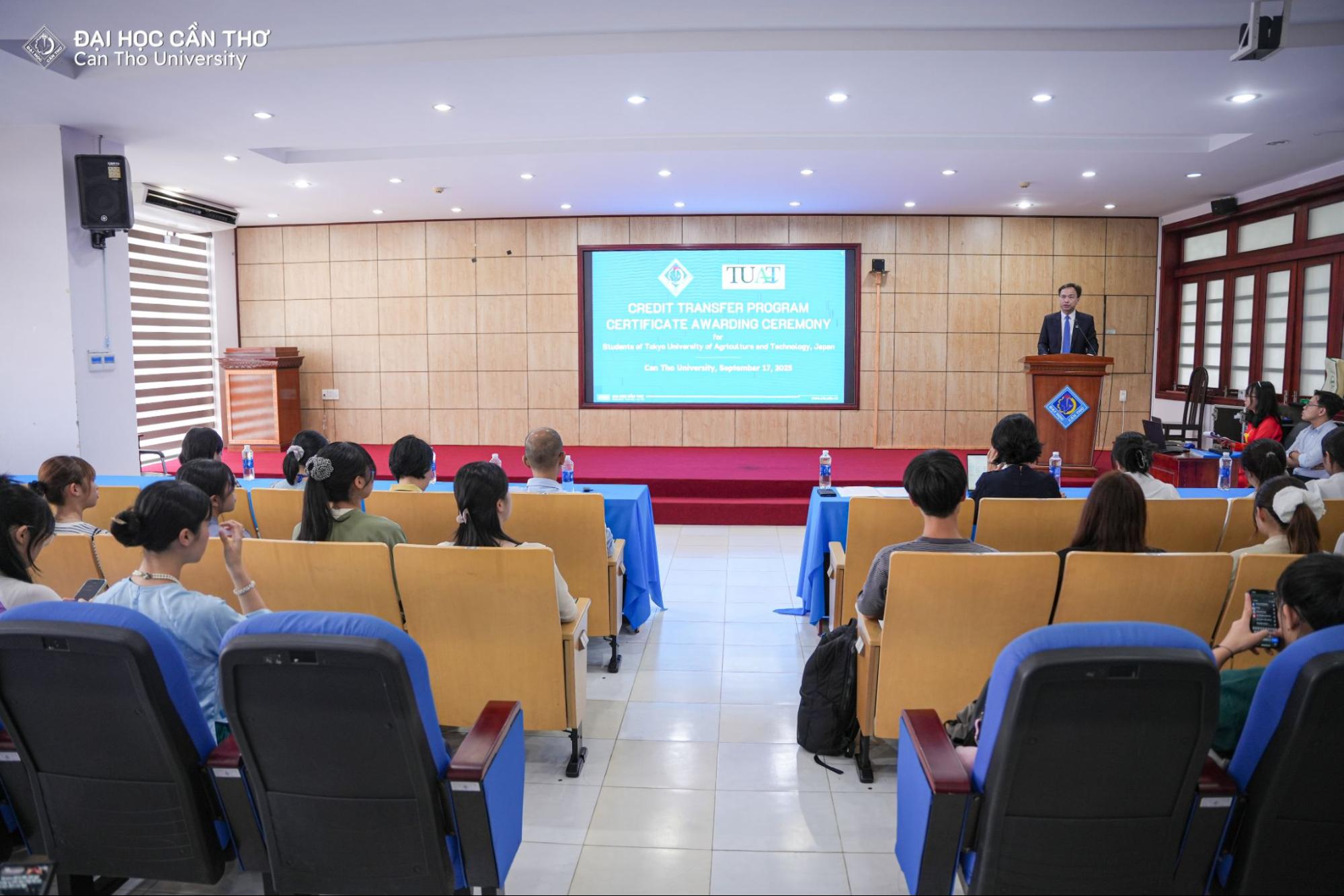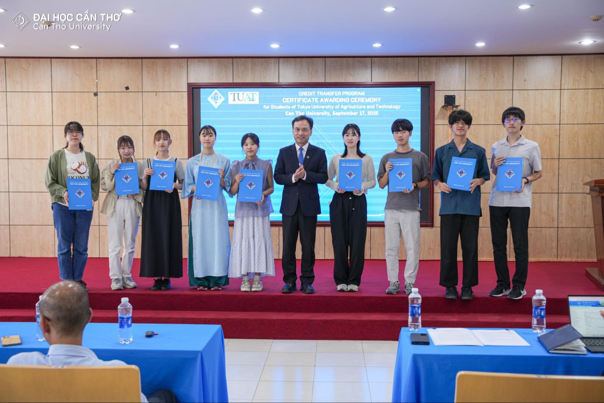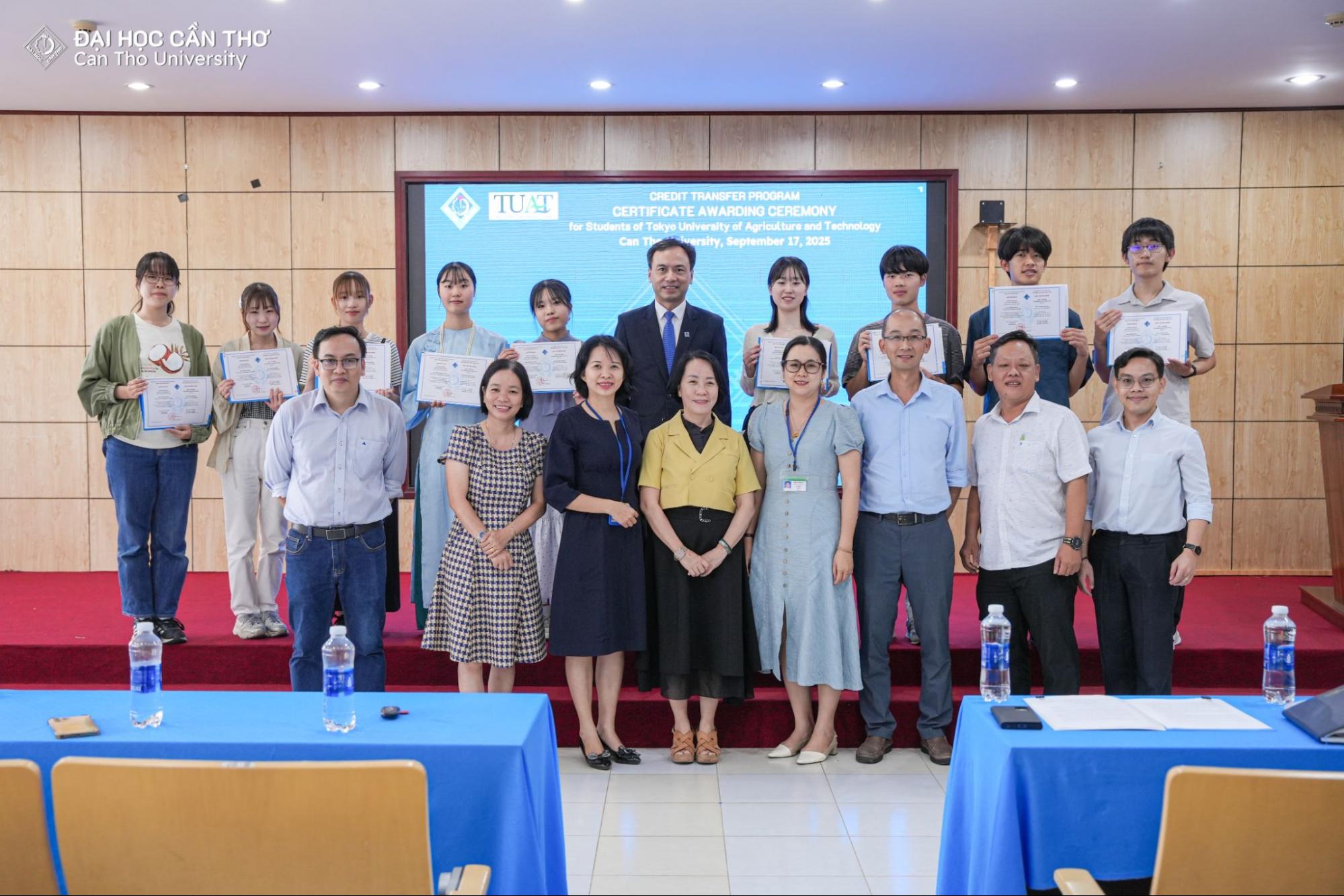 Chiều ngày 16/9/2025, Đại học Cần Thơ (ĐHCT) đã tổ chức Lễ Bế giảng chương trình trao đổi tín chỉ cho sinh viên từ Trường Đại học Nông nghiệp và Công nghệ Tokyo, Nhật Bản (Tokyo University of Agriculture and Technology - TUAT). Sự kiện có sự tham dự của TS. Lê Văn Lâm, Phó Hiệu trưởng ĐHCT cùng các thầy cô đại diện các đơn vị và các sinh viên đến từ Nhật Bản.