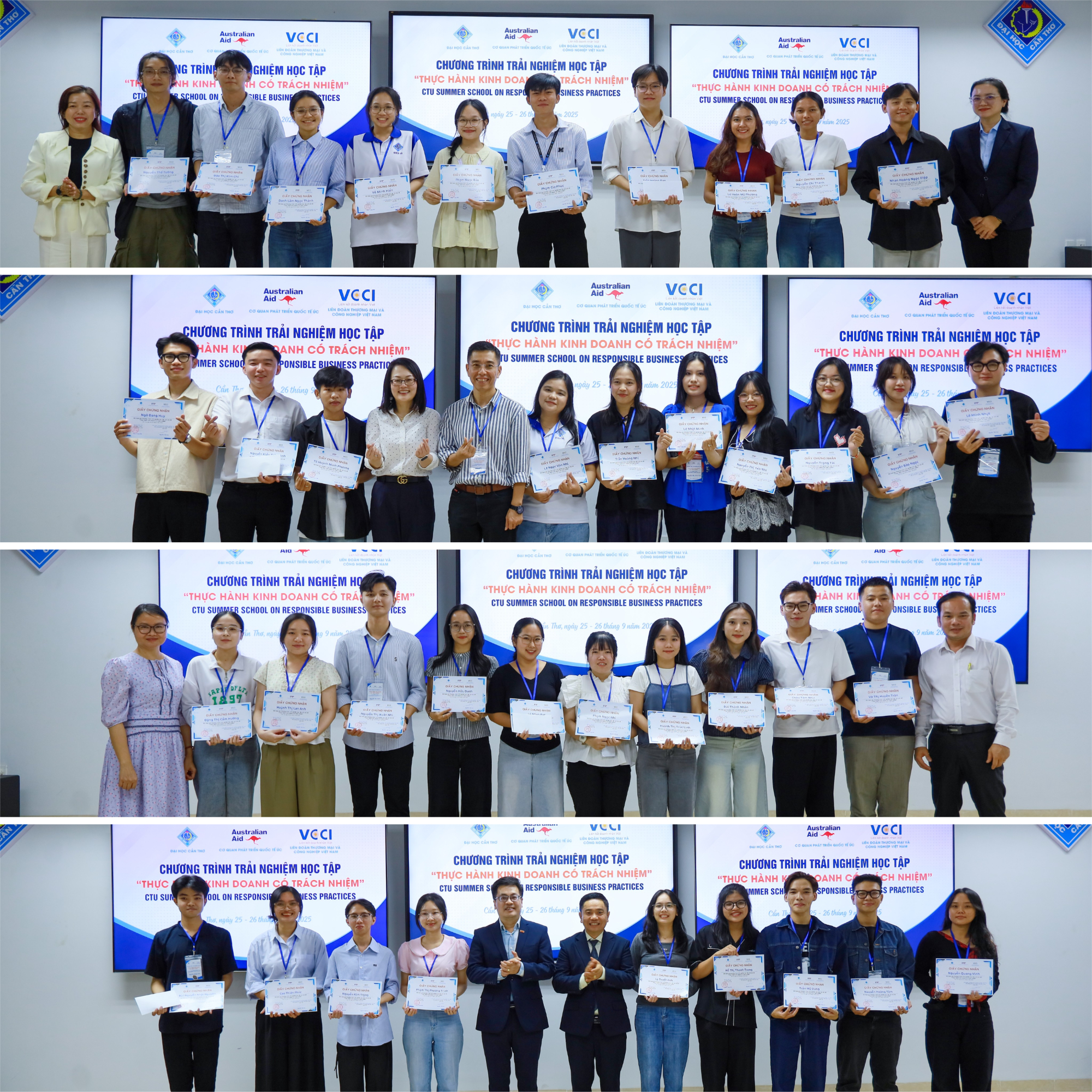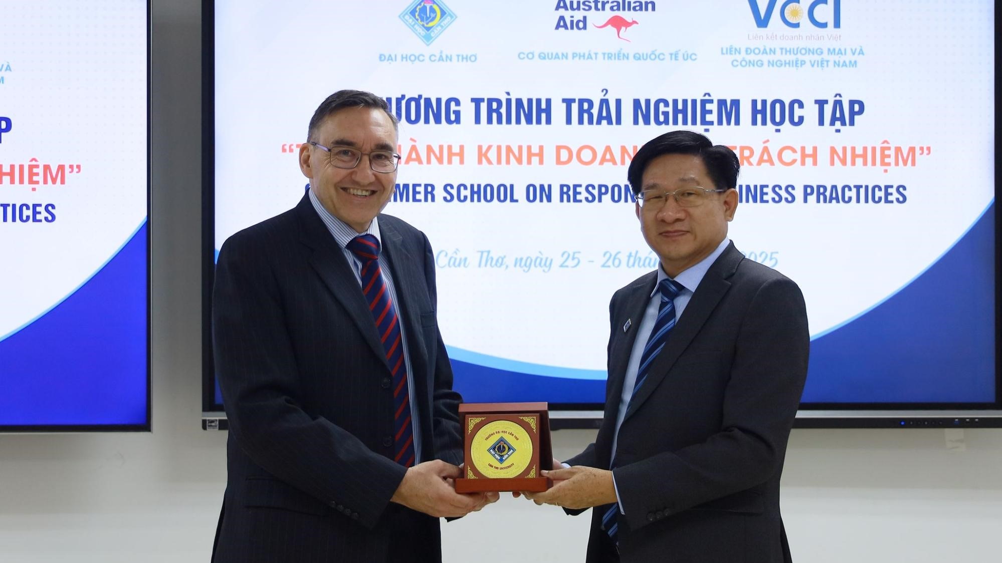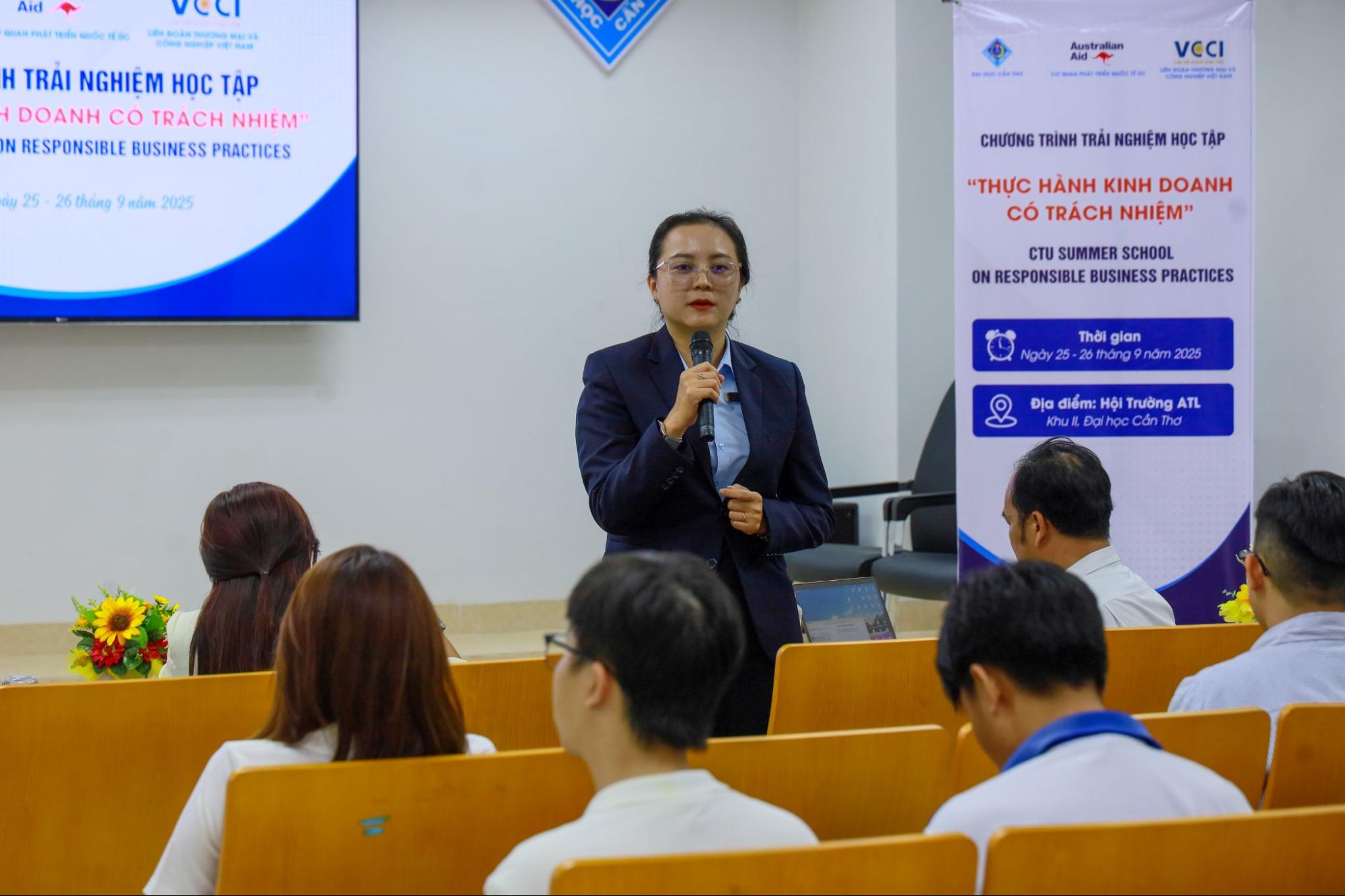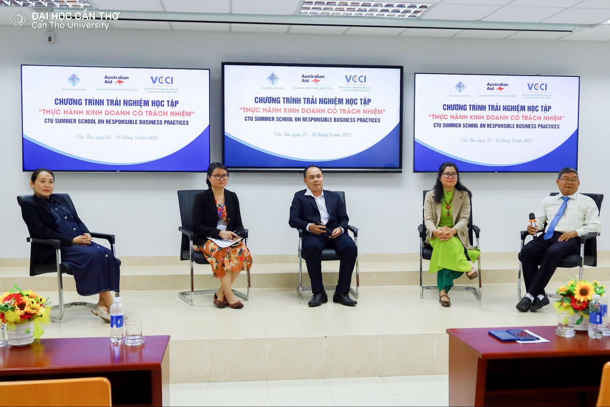 Trong hai ngày 25 và 26/9/2025, Đại học Cần Thơ (ĐHCT) phối hợp cùng Liên đoàn Thương mại và Công nghiệp Việt Nam (VCCI) đã tổ chức Chương trình Trải nghiệm học tập (Summer school) về chủ đề “Thực hành kinh doanh có trách nhiệm” với nhiều hoạt động học tập kết hợp trải nghiệm thực tiễn cho sinh viên, học viên ngành luật và kinh tế.