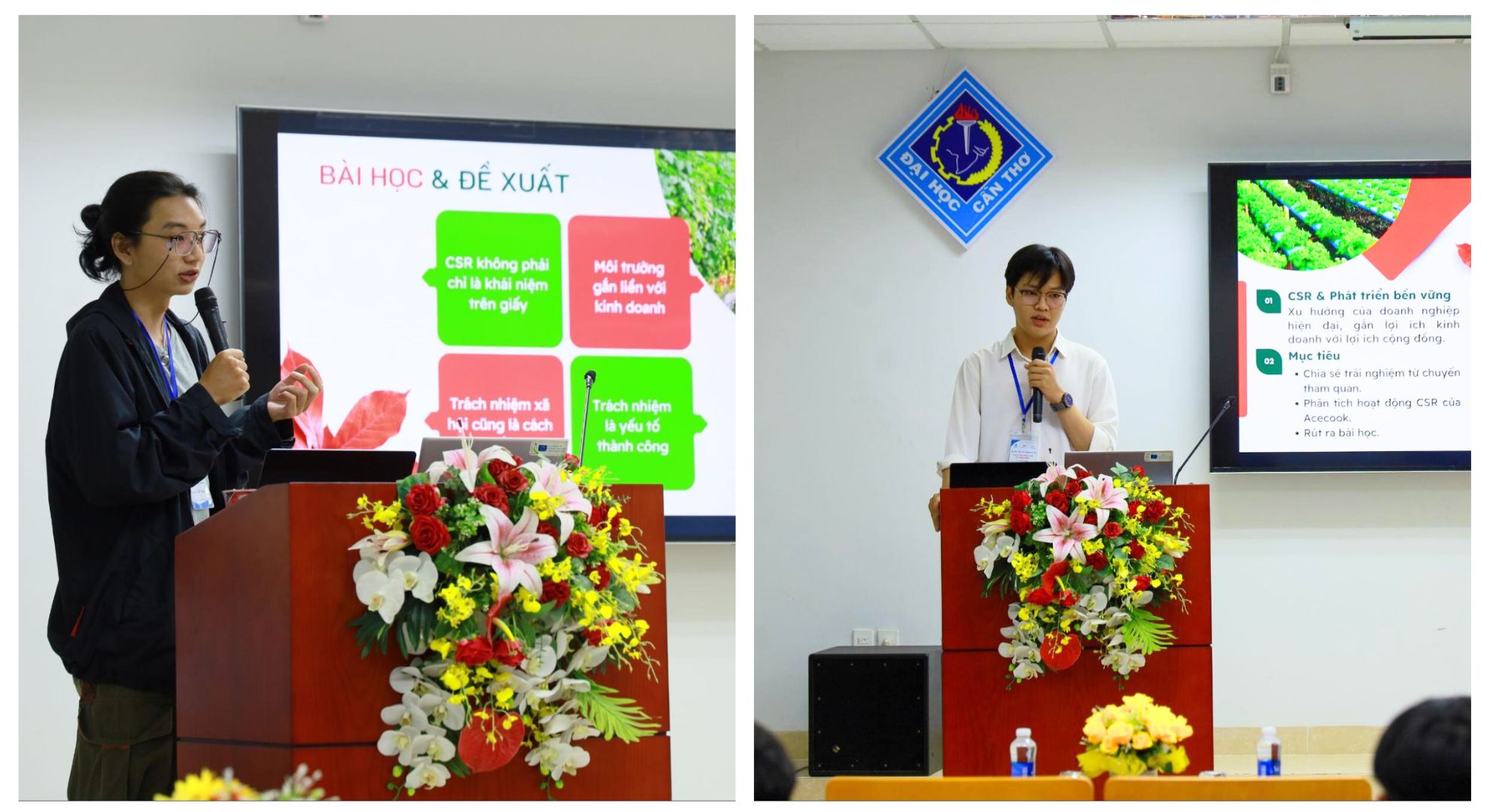 Các báo cáo chuyên đề từ giảng viên ĐHCT kết hợp với phần chia sẻ từ doanh nghiệp xoay quanh chủ đề Thực hành kinh doanh có trách nhiệm và Nguyên tắc Hướng dẫn của Liên Hợp Quốc (UNGPs) đã cung cấp nhiều kiến thức bổ ích và thực tiễn cho sinh viên, học viên. Buổi chiều, đoàn tham gia chuyến tham quan học tập tại Công ty Acecook Việt Nam (Chi nhánh Vĩnh Long), trực tiếp tìm hiểu quy trình sản xuất và mô hình quản trị gắn với yếu tố trách nhiệm xã hội.