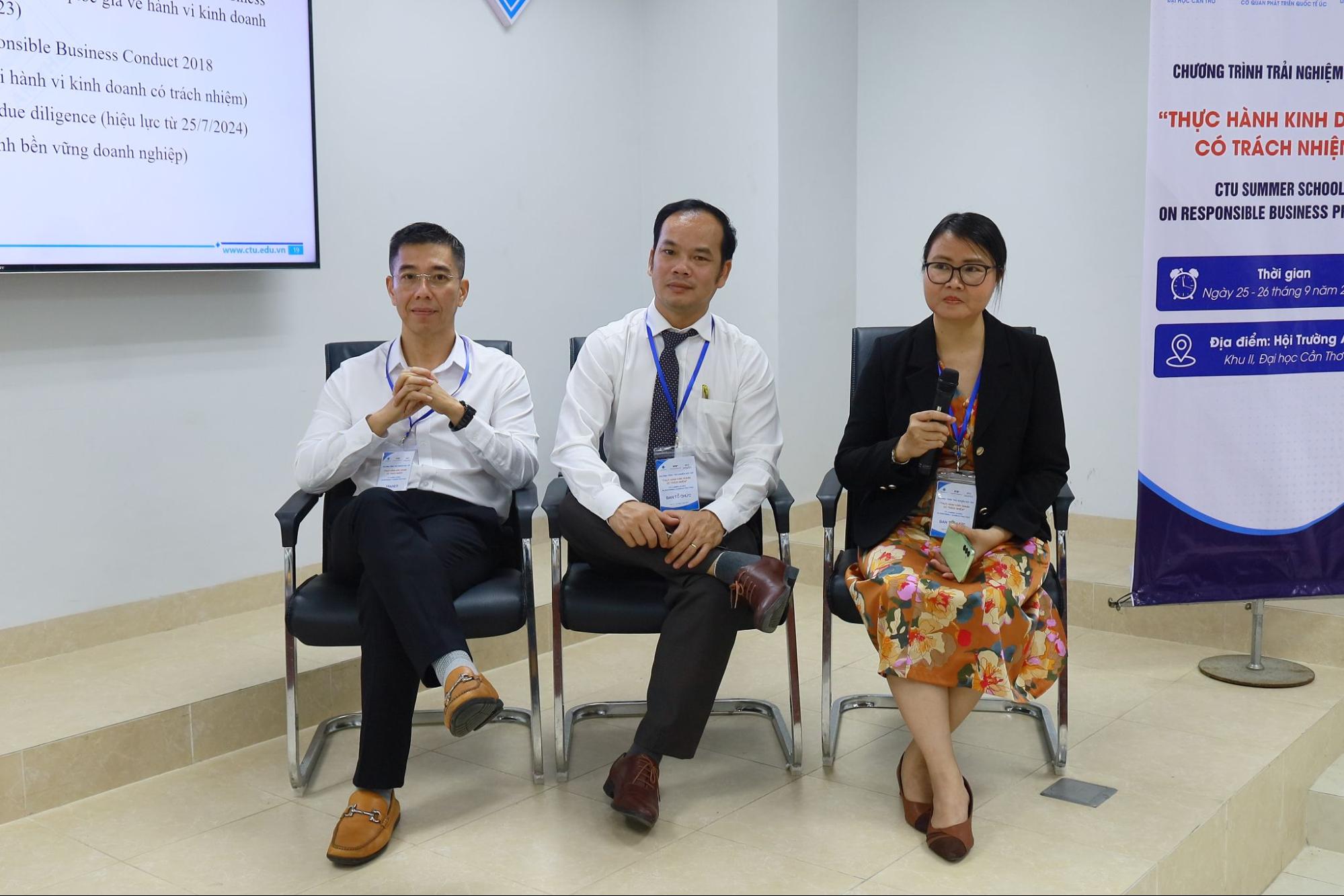 Phát biểu tại buổi Khai mạc Chương trình, Ông Nguyễn Tiến Huy, Giám đốc Văn phòng Doanh nghiệp vì sự Phát triển bền vững (VCCI) cho rằng kinh doanh có trách nhiệm không còn là một lựa chọn, mà là một yêu cầu tất yếu đối với doanh nghiệp trong thời đại hội nhập toàn cầu, và càng đặc biệt quan trọng trong bối cảnh Việt Nam đang tích cực tham gia vào các cam kết quốc tế về phát triển bền vững, chuyển đổi xanh và kinh tế tuần hoàn. Ông cảm ơn ĐHCT đã phối hợp tổ chức Chương trình và cảm ơn Chính phủ Úc đã hỗ trợ cho VCCI để tổ chức các hoạt động trong đó có Chương trình này. Ông cũng tin tưởng rằng Chương trình hôm nay không chỉ mang lại những kiến thức, kỹ năng bổ ích cho sinh viên mà còn truyền cảm hứng để các bạn trở thành những công dân toàn cầu có trách nhiệm, những nhà lãnh đạo và doanh nhân tương lai biết quan tâm đến cộng đồng, đạo đức trong kinh doanh và sự phát triển lâu dài. VCCI cam kết sẽ tiếp tục đồng hành cùng các trường đại học, các tổ chức quốc tế và doanh nghiệp để thúc đẩy tinh thần kinh doanh có trách nhiệm trong giới trẻ, vì một Việt Nam phát triển bền vững và hội nhập hiệu quả hơn.