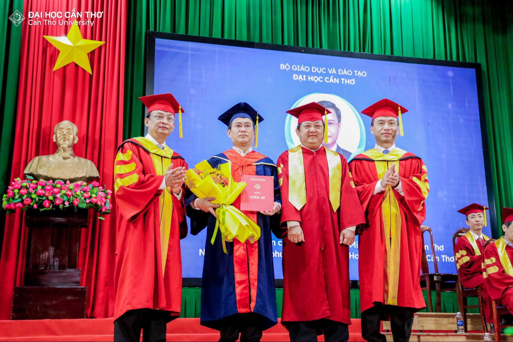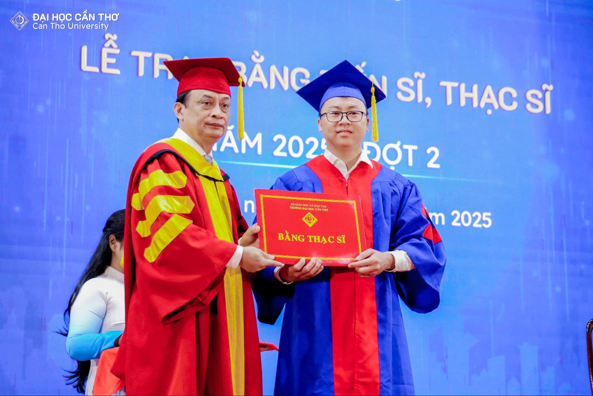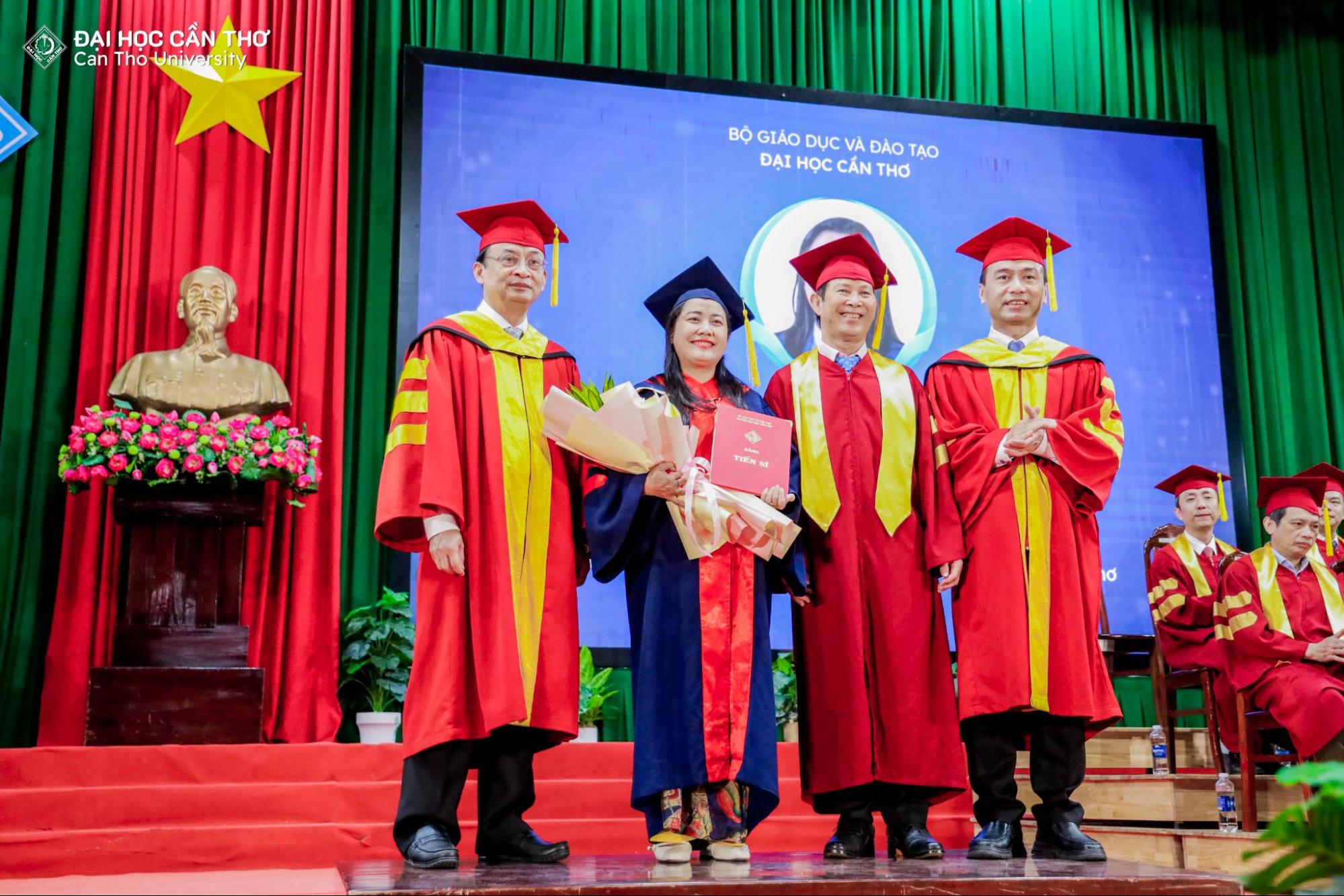 Lễ trao bằng tốt nghiệp không chỉ là sự kiện ghi nhận kết quả học tập và nghiên cứu của người học sau đại học, mà còn là dịp để tôn vinh tinh thần bền bỉ, khát vọng tri thức và trách nhiệm học thuật mà các tân khoa đã theo đuổi trong suốt quá trình đào tạo. Mỗi tấm bằng được trao là kết tinh của nỗ lực cá nhân, sự đồng hành tận tâm của đội ngũ giảng viên, cùng môi trường học thuật nghiêm túc, chuẩn mực mà ĐHCT không ngừng vun đắp. Đối với các tân tiến sĩ, thạc sĩ, đây không phải là điểm kết thúc, mà là bước khởi đầu cho hành trình cống hiến tri thức, lan tỏa giá trị học thuật và đóng góp thiết thực cho xã hội. Về phía ĐHCT, thành công của người học chính là minh chứng rõ nét cho chất lượng đào tạo và là động lực để Nhà trường tiếp tục kiên định với con đường phát triển bền vững, lấy tri thức làm nền tảng và con người làm trung tâm.
