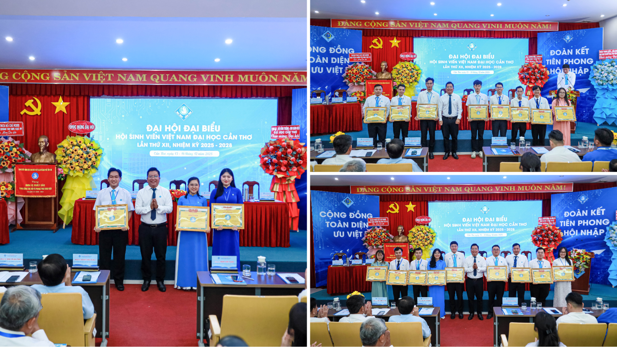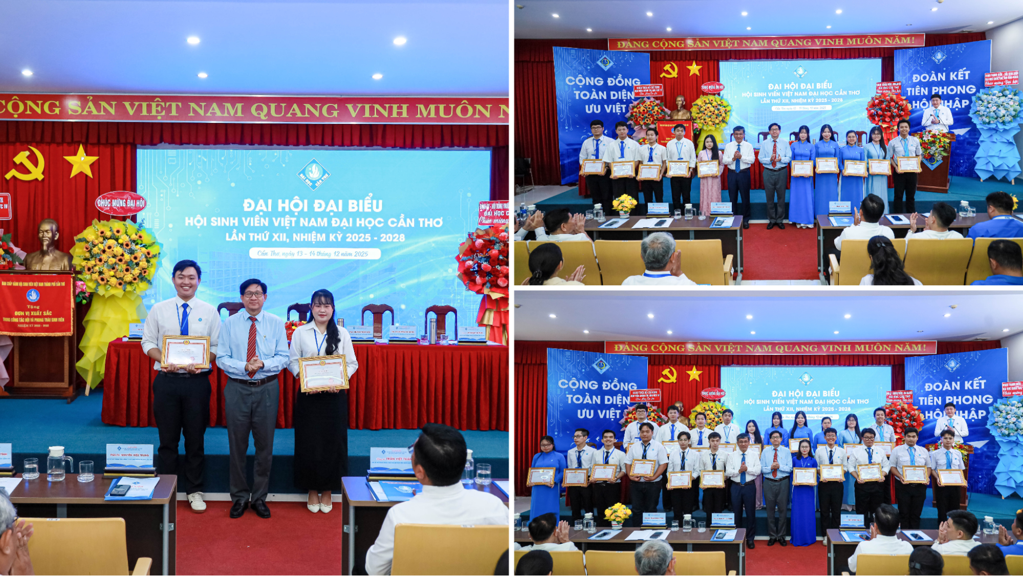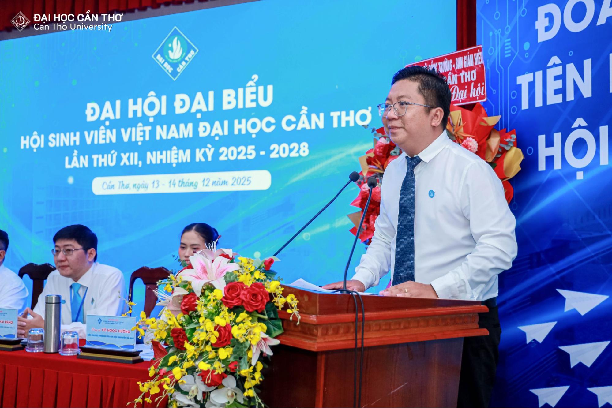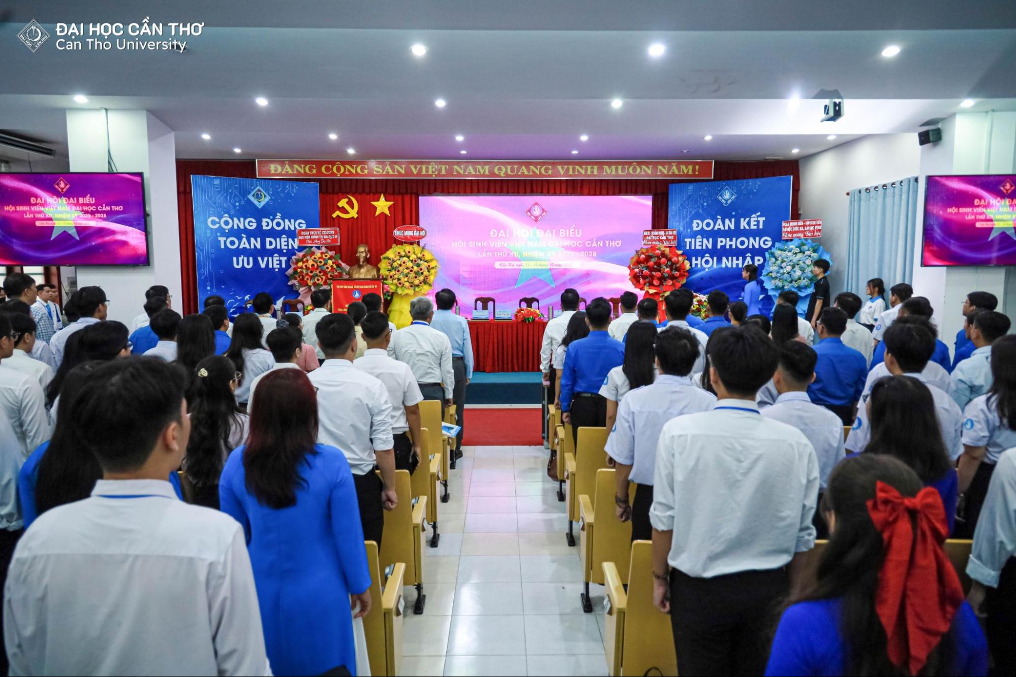 Trong không khí phấn khởi, đoàn kết và trách nhiệm của toàn thể sinh viên Đại học Cần Thơ (ĐHCT), trong hai ngày 13 và 14/12/2025, Hội Sinh viên Việt Nam ĐHCT đã long trọng tổ chức Đại hội Đại biểu lần thứ XII, nhiệm kỳ 2025–2028. Đại hội là sự kiện chính trị quan trọng của sinh viên, đánh dấu bước phát triển mới của phong trào sinh viên và công tác Hội trong giai đoạn đổi mới, hội nhập và chuyển đổi số giáo dục đại học.