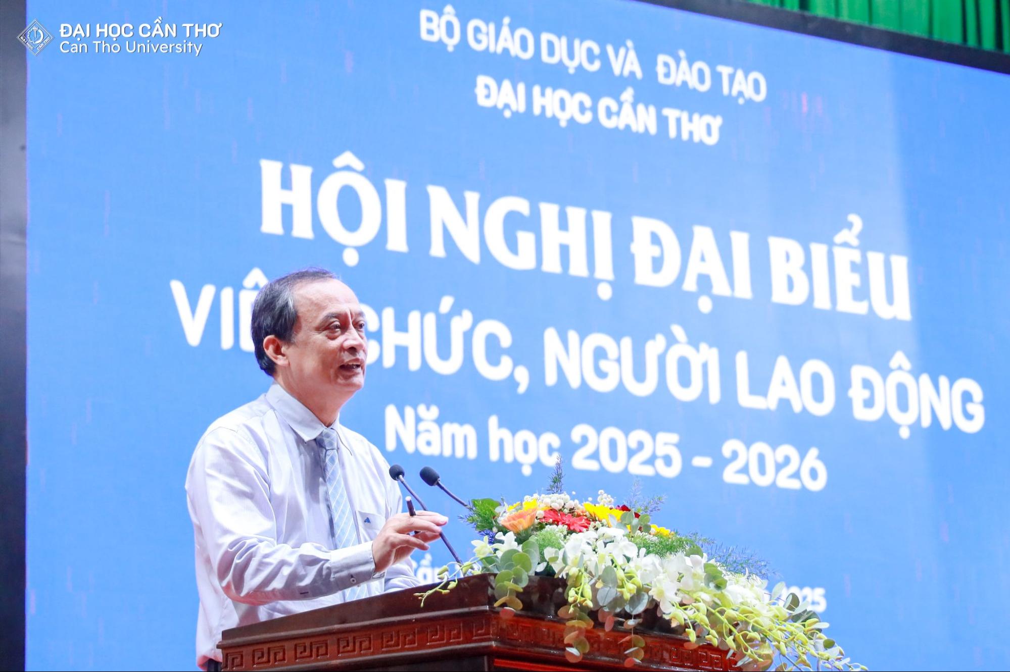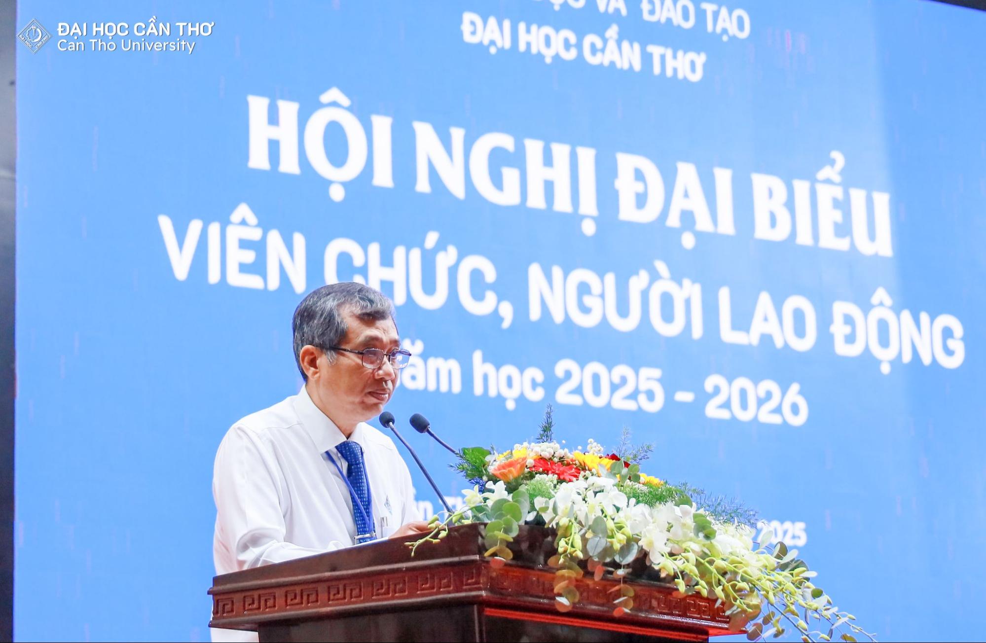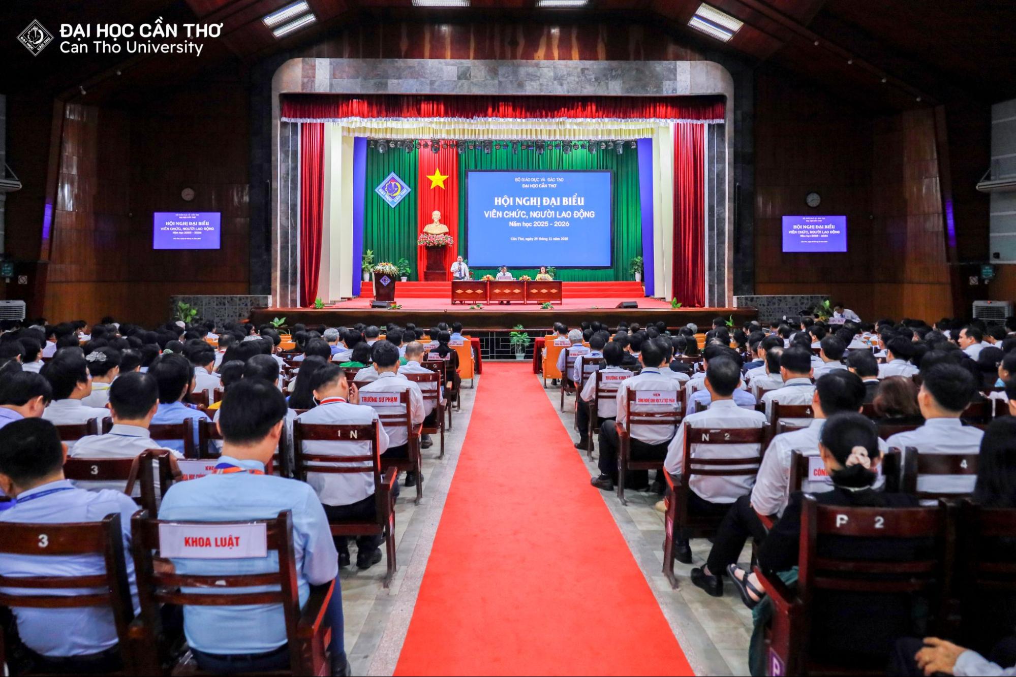 Ngày 29/11/2025, Đại học Cần Thơ (ĐHCT) tổ chức Hội nghị Đại biểu Viên chức và Người lao động (VC-NLĐ) năm học 2025–2026. Hội nghị được tổ chức nhằm đánh giá kết quả đạt được trong công tác quản lý, giảng dạy, học tập, nghiên cứu khoa học và xây dựng Nhà trường trong năm học 2024–2025 và nhiệm kỳ 2020-2025; đồng thời thảo luận, đề ra kế hoạch và các giải pháp triển khai nhiệm vụ năm học mới 2025–2026.