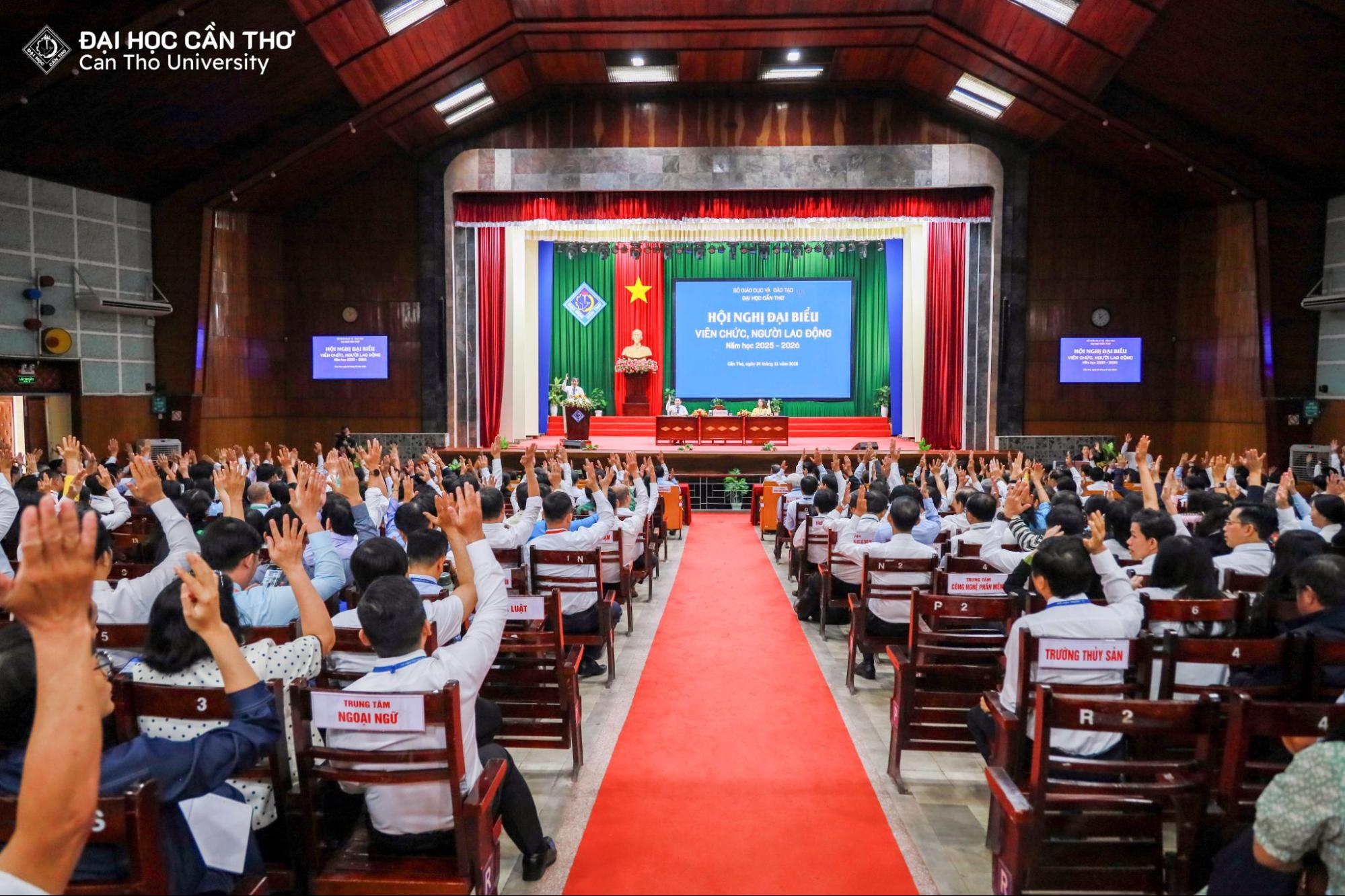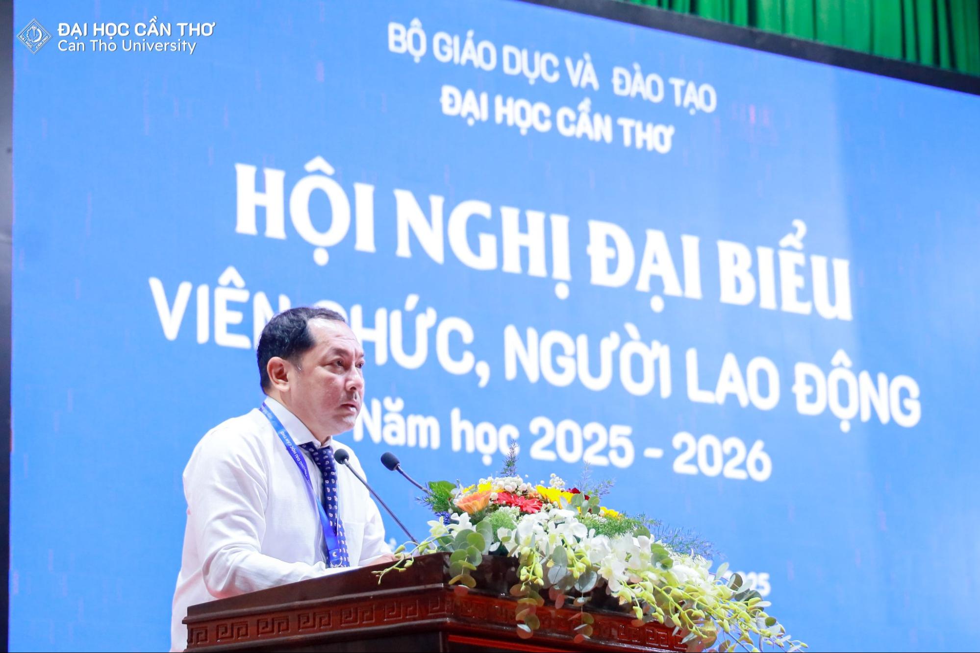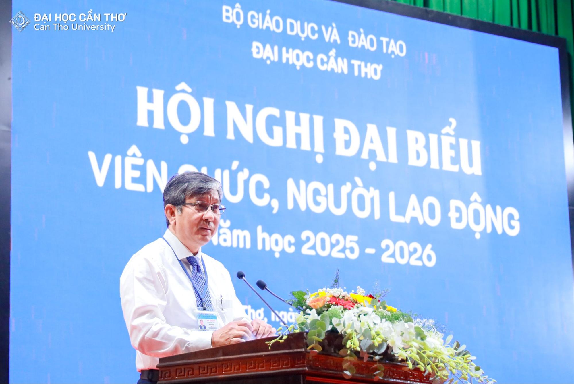 Ngày 29/11/2025, Đại học Cần Thơ (ĐHCT) tổ chức Hội nghị Đại biểu Viên chức và Người lao động (VC-NLĐ) năm học 2025–2026. Hội nghị được tổ chức nhằm đánh giá kết quả đạt được trong công tác quản lý, giảng dạy, học tập, nghiên cứu khoa học và xây dựng Nhà trường trong năm học 2024–2025 và nhiệm kỳ 2020-2025; đồng thời thảo luận, đề ra kế hoạch và các giải pháp triển khai nhiệm vụ năm học mới 2025–2026.