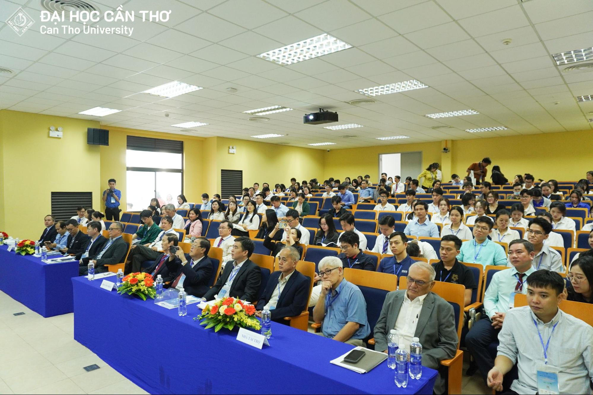 Phát biểu khai mạc hội thảo, PGS.TS. Nguyễn Văn Thành chia sẻ, hội thảo ghi nhận con số đặc biệt ấn tượng, quy tụ hơn 220 đại biểu tham dự trực tiếp, bao gồm lãnh đạo các viện, trường đại học, các giáo sư đầu ngành, nhà khoa học, doanh nghiệp cùng đội ngũ nghiên cứu trẻ đầy tiềm năng. Quy mô và chất lượng này không chỉ phản ánh tầm vóc của sự kiện mà còn khẳng định sức hấp dẫn mạnh mẽ của hai lĩnh vực: Công nghệ sinh học và Công nghệ thực phẩm trong hệ sinh thái khoa học quốc gia. Chính sự kết nối liên ngành này đã tạo nên một nền tảng khoa học mạnh mẽ để giải quyết các vấn đề thách thức của vùng Đồng bằng sông Cửu Long, từ ứng phó với biến đổi khí hậu, xử lý phụ phẩm nông nghiệp, kiểm soát an toàn thực phẩm, cho đến nâng cao giá trị sản xuất và thương mại cho sản phẩm nông sản Việt Nam.