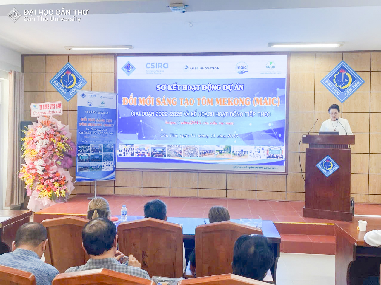 Sáng ngày 01/11/2025 tại Trường Thủy sản - Đại học Cần Thơ (ĐHCT), Hội thảo sơ kết dự án Đổi mới sáng tạo tôm Mekong (MAIC) giai đoạn 2022-2025 và kế hoạch hoạt động tiếp theo đã được tổ chức. Đây là sự kiện thường niên trong khuôn khổ Dự án MAIC (Pha 2) do ĐHCT chủ trì. Dự án do Tổ chức Nghiên cứu Công nghiệp và Khoa học Khối thịnh vượng chung (CSIRO) Úc tài trợ, thuộc Chương trình đổi mới sáng tạo hợp tác giữa Bộ Ngoại Giao và Đầu tư - Úc và Bộ Khoa học và Công nghệ -Việt Nam.