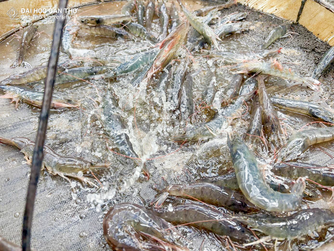 Tôm chân trắng nuôi trong hệ thống tuần hoàn kết hợp đa loài CTU-RAS, sản phẩm sạch, chất lượng cao