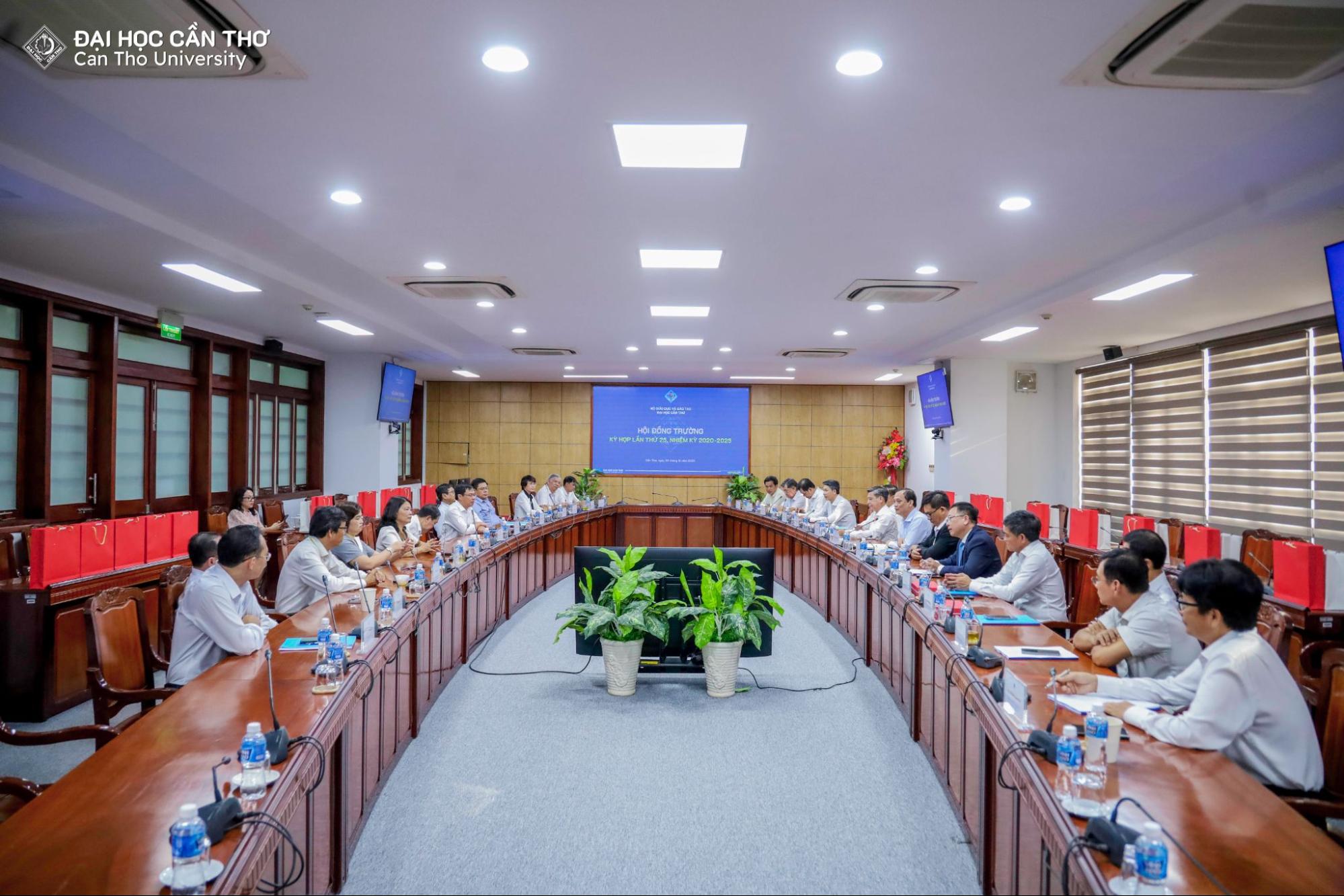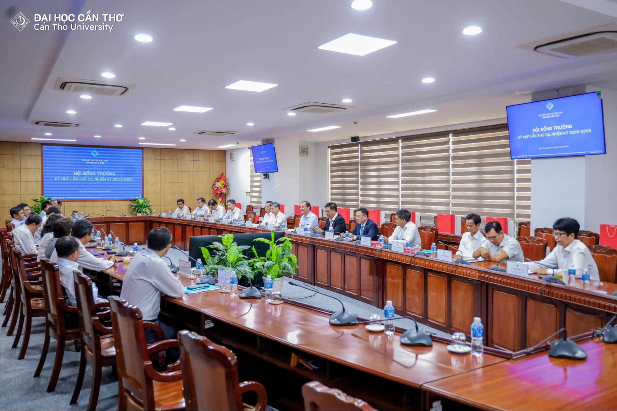 Nhằm đánh giá, tổng kết toàn diện hoạt động của Hội đồng Trường nhiệm kỳ 2020-2025; nhìn nhận những kết quả nổi bật đã đạt được, những bài học kinh nghiệm và định hướng chiến lược cho giai đoạn phát triển tiếp theo, chiều ngày 29/12/2025, Hội đồng Trường Đại học Cần Thơ (ĐHCT) đã tổ chức Kỳ họp lần thứ 25 và Hội nghị Tổng kết nhiệm kỳ 2020-2025. Chương trình do GS.TS. Nguyễn Thanh Phương – Bí thư Đảng ủy, Chủ tịch Hội đồng Trường chủ trì. Kỳ họp có sự tham gia của ông Đồng Văn Thanh - Phó Bí thư thường trực, Chủ tịch HĐND thành phố Cần Thơ; Ông Dương Tấn Hiển – Nguyên Phó Chủ tịch UBND thành phố Cần Thơ; Ông Trần Văn Đạt – Phó Vụ trưởng Vụ Học sinh, sinh viên – Bộ Giáo dục và Đào tạo; Ông Châu Tuấn Hồng - Nguyên Giám đốc Sở Giáo dục và Đào tạo tỉnh Sóc Trăng; Ông Nguyễn Đức Hiền – Tổng Giám đốc Công ty Vemedim; Ông Lê Thanh Phương – Chủ tịch HĐQT Công ty CP Chăn nuôi gia cầm Vietswan; Ông Văn Tiến Thanh – Tổng Giám đốc Công ty Phân bón Dầu khí Cà Mau; Ông Đoàn Đình Duy Khương - Phó Tổng Giám đốc điều hành Aikya Pharma và các thành viên Hội đồng Trường, Ban Giám hiệu, lãnh đạo các đơn vị liên quan.
