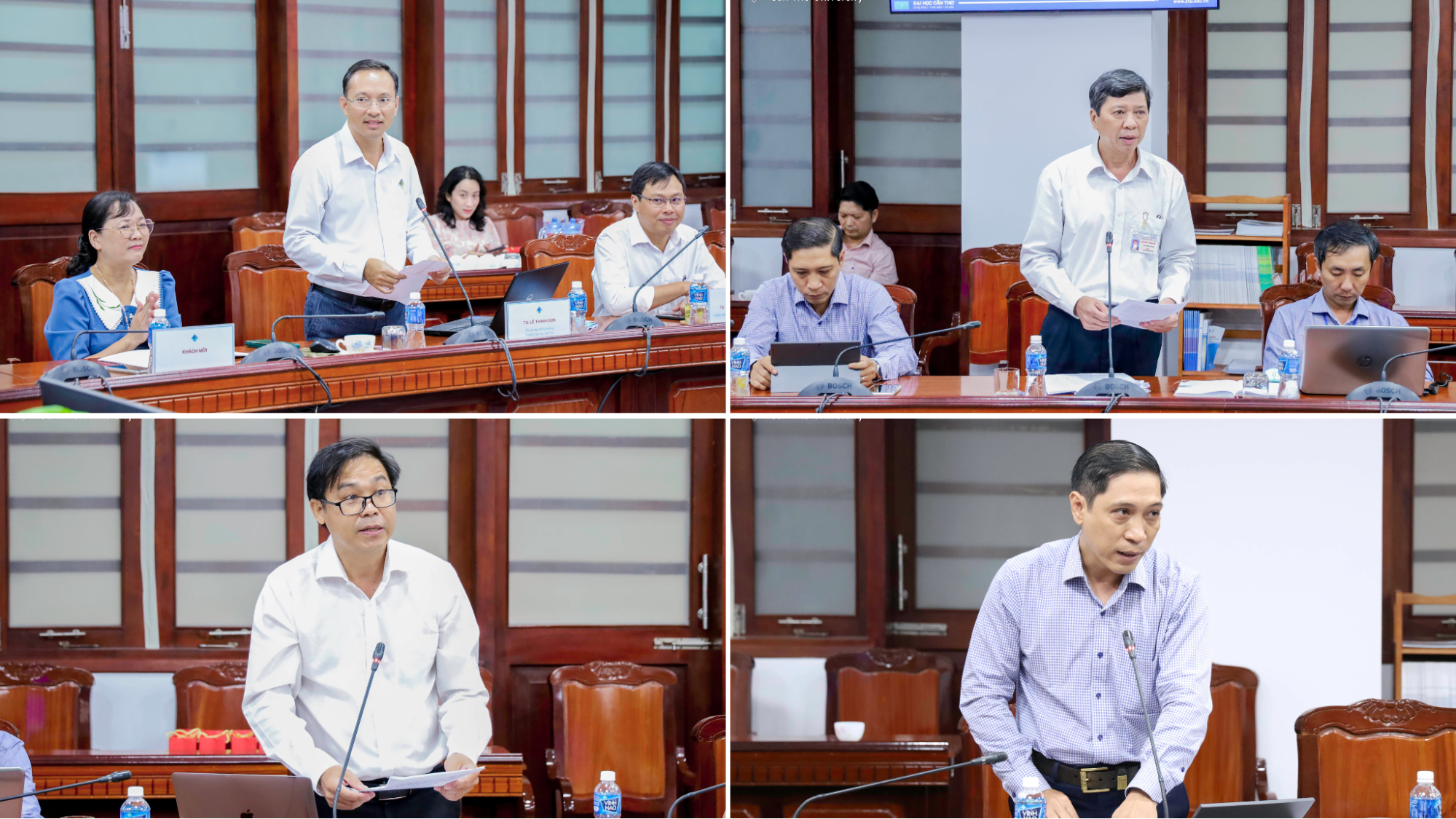 Thành viên Hội đồng Trường và đại diện các đơn vị thừa ủy quyền của Hiệu trưởng trình bày và tham gia thảo luận, đóng góp ý kiến tại Kỳ họp