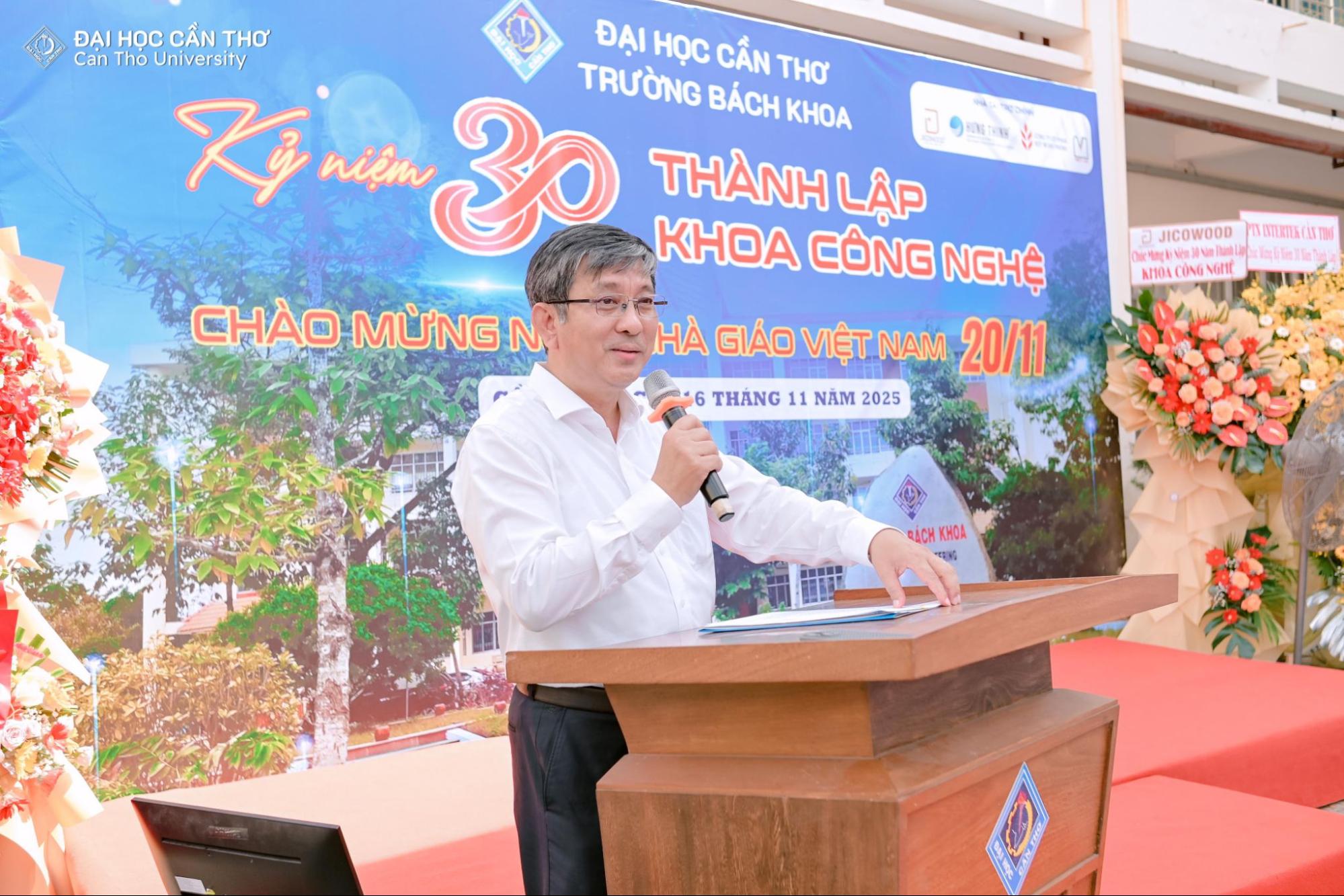 Ngày 16/11/2025, Trường Bách khoa đã tổ chức Lễ Kỷ niệm 30 năm thành lập Khoa Công nghệ, Đại học Cần Thơ (ĐHCT) và Chào mừng ngày Nhà giáo Việt Nam 20/11. Chương trình có sự tham dự của PGS.TS. Trần Trung Tính, Hiệu trưởng ĐHCT; PGS.TS. Lê Quang Minh, Nguyên Hiệu trưởng ĐHCT; TS. Nguyễn Văn Cương, Hiệu trưởng Trường Bách khoa cùng với đông đảo quý thầy cô, giảng viên và sinh viên, cựu sinh viên các khóa.