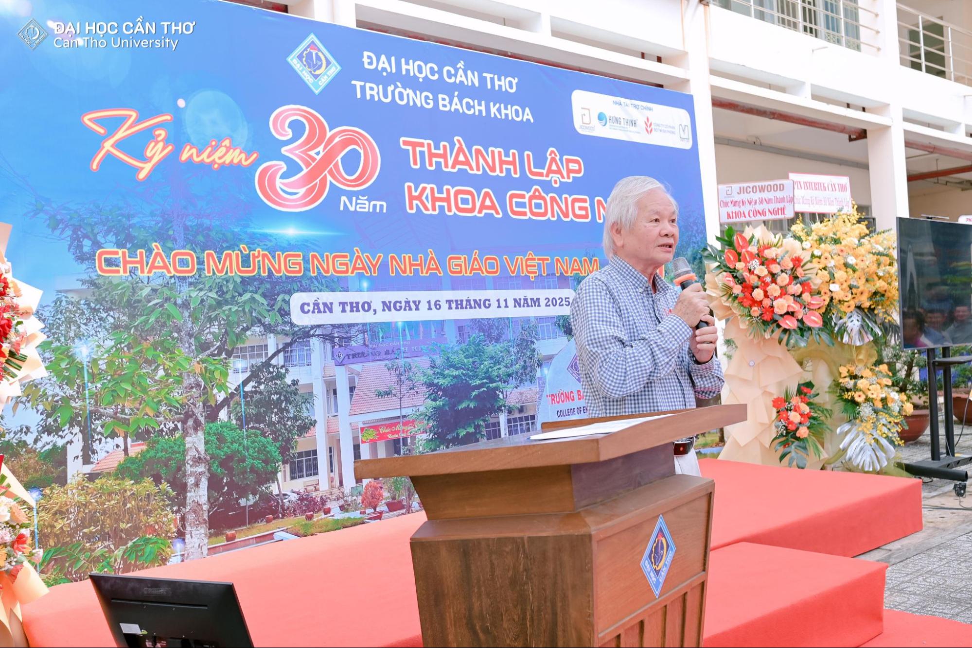 PGS.TS. Lê Quang Minh, Nguyên Hiệu trưởng ĐHCT, Nguyên Phó trưởng Khoa Công nghệ (Trường Bách khoa) chia sẻ về những kỷ niệm và gửi lời chúc đến Trường Bách khoa nhân dịp kỷ niệm 30 năm thành lập
