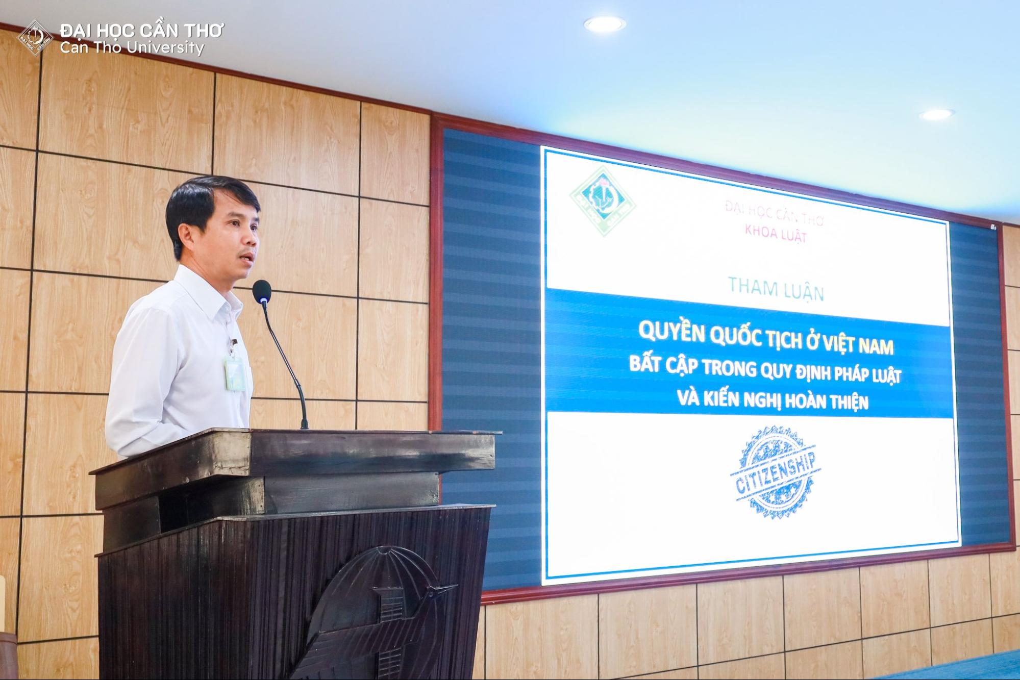 ThS. Đinh Thanh Phương trình bày tham luận “Quyền quốc tịch ở Việt Nam – Bất cập trong quy định pháp luật và kiến nghị hoàn thiện”