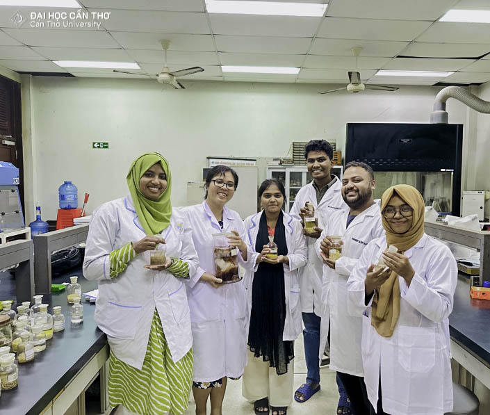 Trong thời gian học tập tại ĐHCT, các sinh viên Bangladesh đã tham gia các học phần chuyên môn và các buổi thực hành chuyên sâu tại hệ thống phòng thí nghiệm, cơ sở thực hành hiện đại của Khoa Thú y, Trường Nông nghiệp. Song song với hoạt động đào tạo, sinh viên còn có cơ hội tham dự và trình bày báo cáo khoa học tại các hội thảo chuyên đề trong lĩnh vực Nông nghiệp do ĐHCT phối hợp với các đối tác tổ chức; qua đó tăng cường năng lực nghiên cứu, tư duy phản biện và khả năng trao đổi học thuật quốc tế. Bên cạnh đó, các hoạt động giao lưu sinh viên, giao lưu văn hóa và trải nghiệm thực tế đời sống – sản xuất tại địa phương đã giúp sinh viên hiểu sâu sắc hơn về điều kiện tự nhiên, kinh tế – xã hội vùng Đồng bằng sông Cửu Long, góp phần làm phong phú thêm hành trình học tập và trải nghiệm tại Việt Nam.