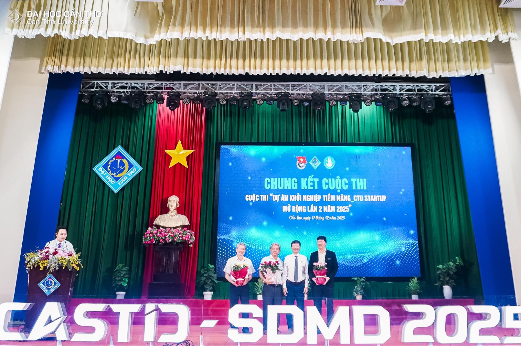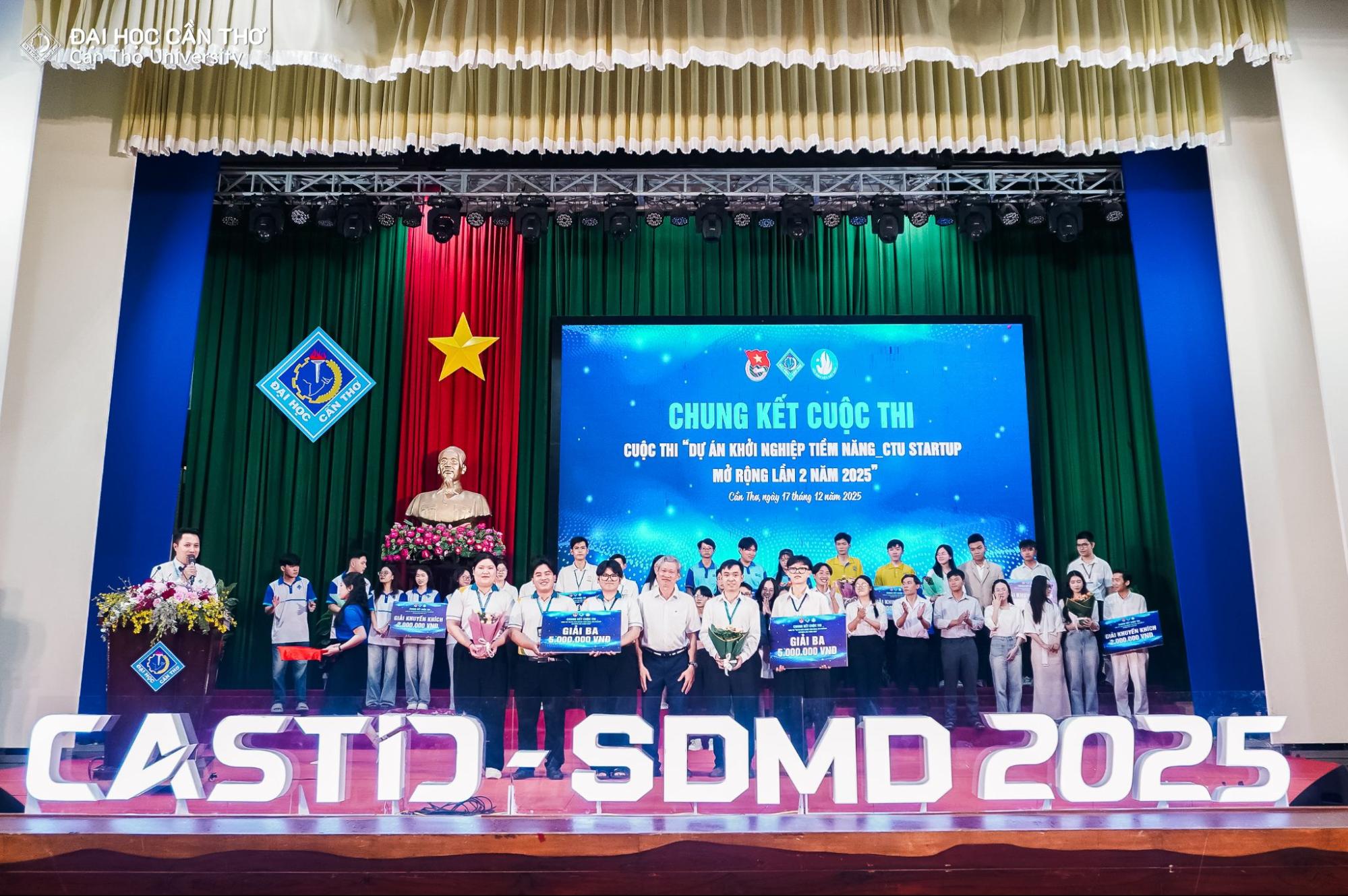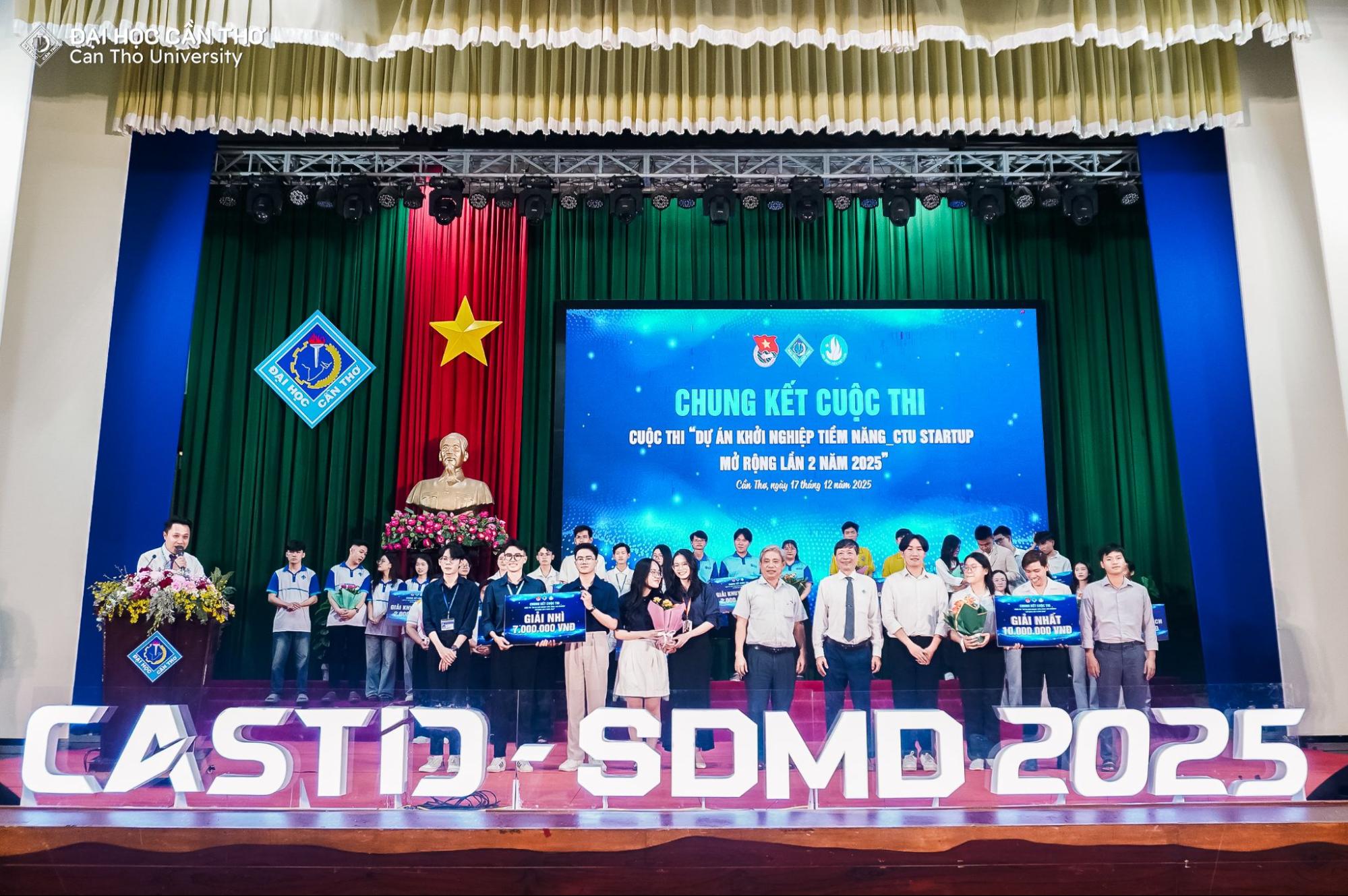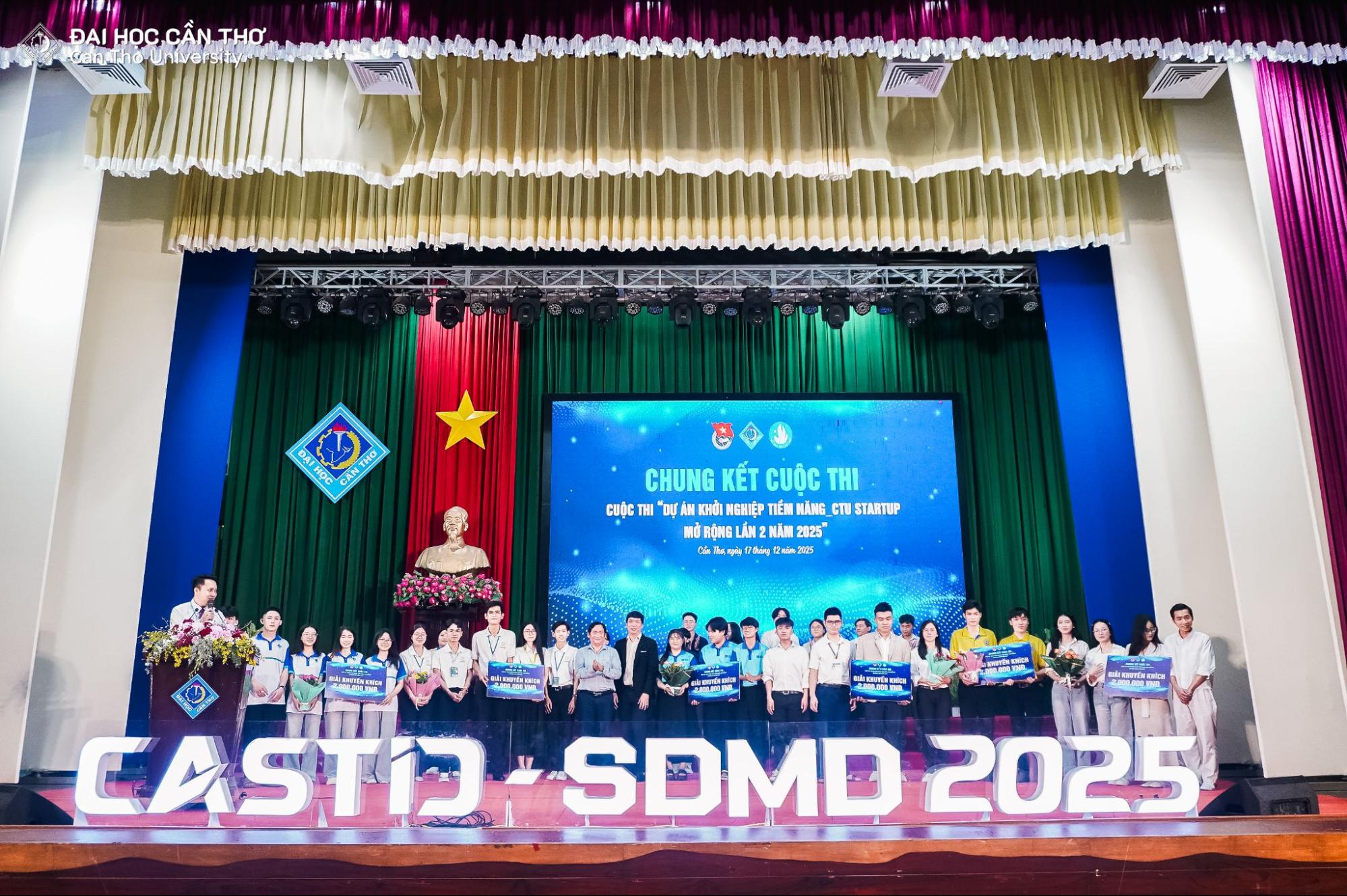 Chiều ngày 17/12/2025, tại Hội trường Rùa, Đại học Cần Thơ (ĐHCT), vòng chung kết cuộc thi “Dự án khởi nghiệp tiềm năng CTU Startup mở rộng lần 2 năm 2025” đã diễn ra trong không khí đầy phấn khởi. Chương trình thuộc chuỗi hoạt động của Tuần lễ Khoa học công nghệ, Đổi mới sáng tạo và Chuyển đổi số Thành phố Cần Thơ năm 2025 (CASTID 2025).