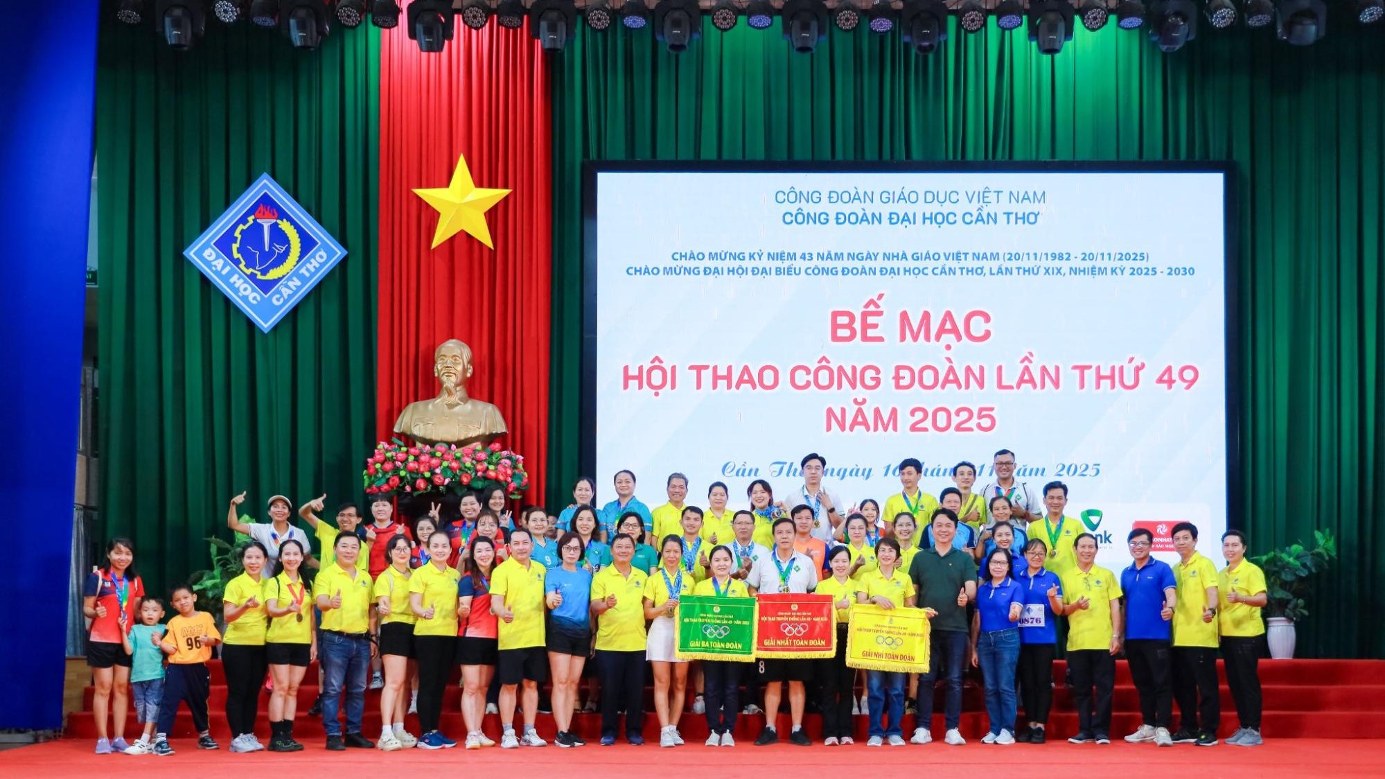 Hội thao Truyền thống Công đoàn Đại học Cần Thơ (ĐHCT) năm 2025, diễn ra từ 12/10 đến 16/11/2025, đã trở thành hoạt động nổi bật trong công tác chăm lo đời sống tinh thần cho viên chức và người lao động. Với 11 môn thi và 30 nội dung tranh tài, hội thao thu hút gần 2.000 lượt vận động viên, tạo nên không khí thi đua sôi nổi, lan tỏa tinh thần đoàn kết và rèn luyện thể chất trong toàn Trường. Khép lại hơn một tháng tranh tài, Lễ Bế mạc ngày 16/11/2025 được tổ chức nhằm vinh danh các tập thể, cá nhân có thành tích xuất sắc, đánh dấu một mùa hội thao thành công. Ngay trong buổi sáng cùng ngày, môn thi cuối cùng nội dung Đi bộ thể thao dành cho viên chức, người lao động đã diễn ra trong không khí hào hứng, nhận được sự hưởng ứng đông đảo của viên chức, người lao động.