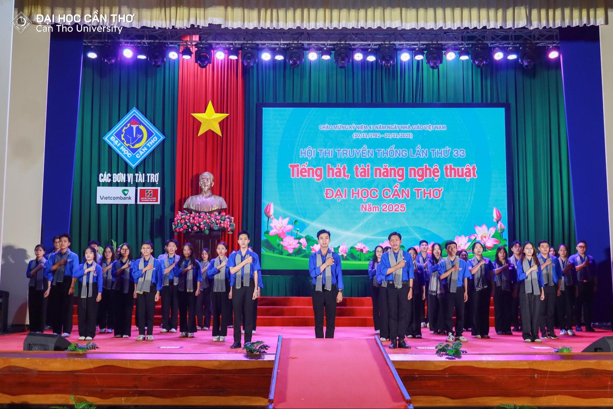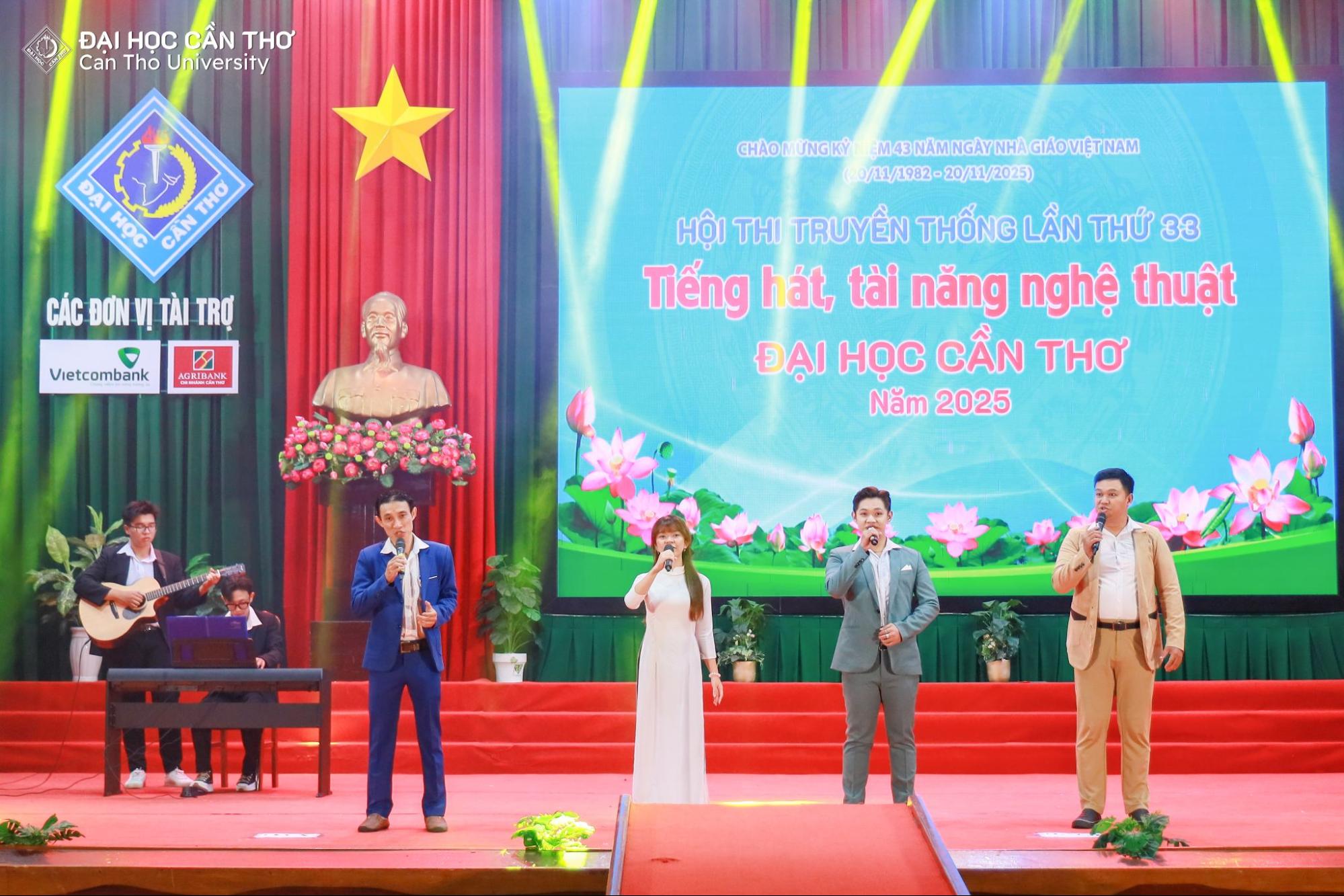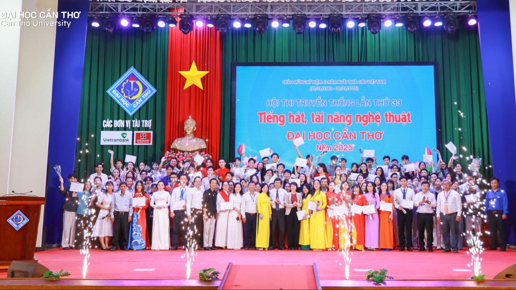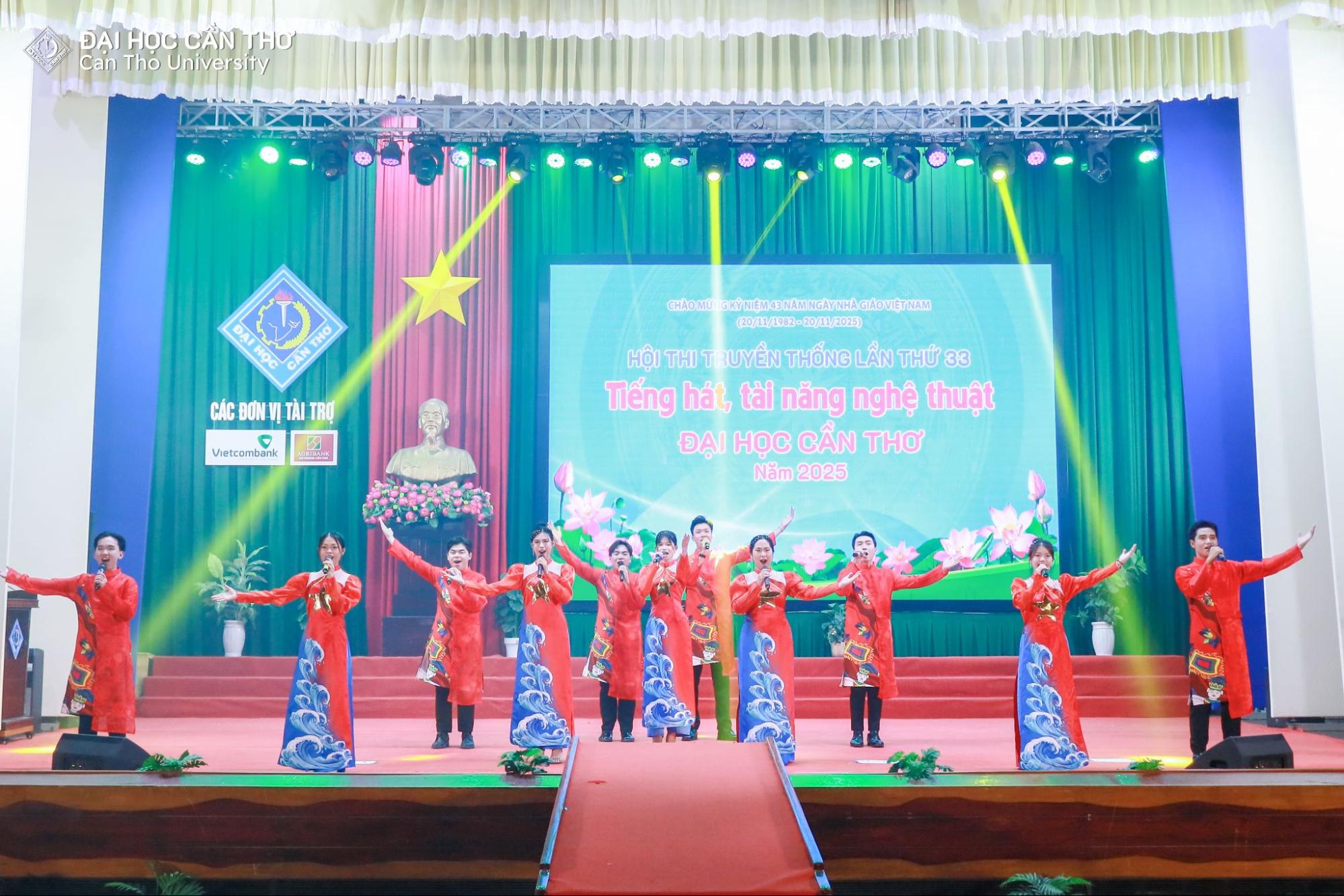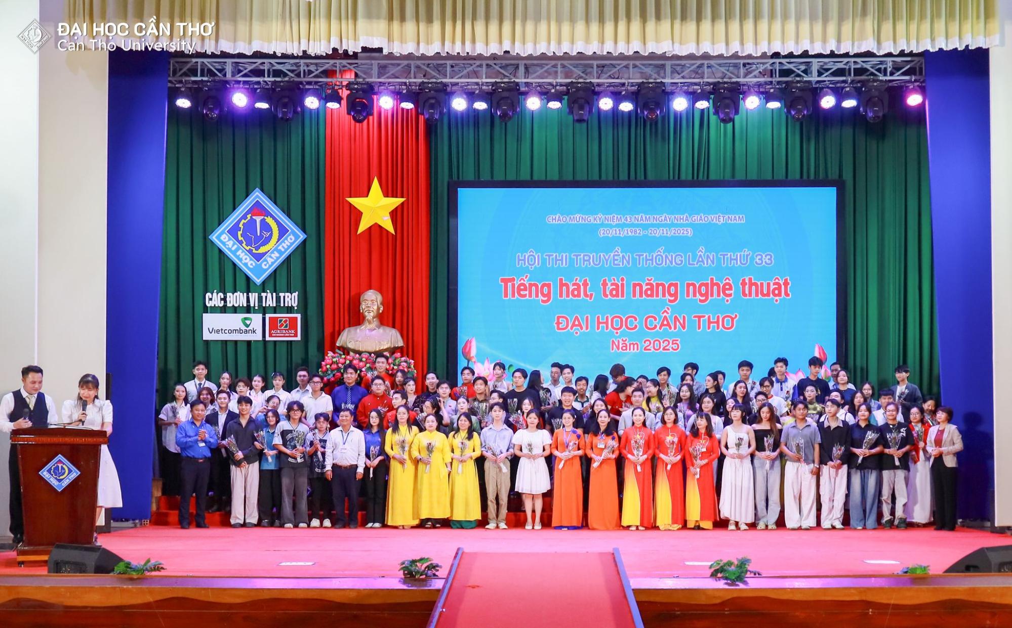 Từ ngày 06 đến 15/11/2025, Đại học Cần Thơ (ĐHCT) tổ chức Hội thi truyền thống “Tiếng hát, tài năng nghệ thuật ĐHCT” lần thứ 33 – năm 2025, hướng đến chào mừng Ngày Nhà giáo Việt Nam 20/11, đồng thời tiếp tục phát huy phong trào văn hóa – văn nghệ trong toàn Trường. Sau 10 ngày thi diễn sôi nổi, tối 15/11/2025, tại Hội trường Rùa, Ban Tổ chức đã tổ chức đêm chung kết và trao giải thưởng, khép lại một mùa hội thi thành công, tràn đầy cảm xúc và để lại dấu ấn đẹp trong lòng người tham dự.