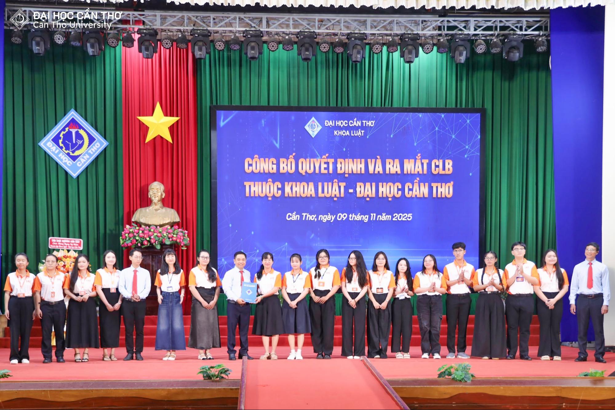 Cũng tại sự kiện, Khoa Luật đã công bố và trao quyết định thành lập 03 Câu lạc bộ chuyên môn trực thuộc Khoa, gồm: Câu lạc bộ Kỹ năng tư pháp, Câu lạc bộ Tiếng Anh pháp lý và Câu lạc bộ Định hướng nghề luật. Việc ra mắt các câu lạc bộ đánh dấu bước phát triển mới trong hoạt động học thuật và rèn luyện kỹ năng cho sinh viên, tạo môi trường học tập năng động, nơi tri thức được gắn kết với thực hành, góp phần hiện thực hóa định hướng đào tạo toàn diện của Khoa Luật – ĐHCT.