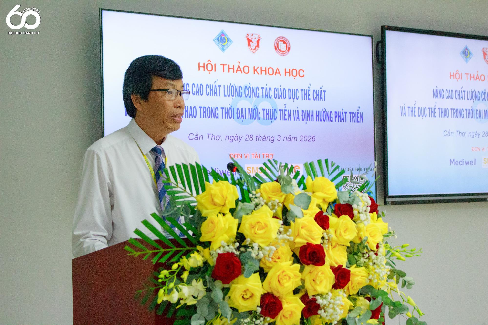 Phát biểu tại hội thảo, GS. TS. Trần Ngọc Hải - Phó Hiệu trưởng ĐHCT nhấn mạnh vai trò ngày càng quan trọng của công tác giáo dục thể chất và thể dục thể thao (GDTC & TDTT) trong việc nâng cao chất lượng đào tạo toàn diện, phát triển thể lực, tinh thần và kỹ năng xã hội cho người học. Trong bối cảnh chuyển đổi số, các mô hình giáo dục hiện đại đang tác động mạnh mẽ đến phương pháp giảng dạy, lĩnh vực GDTC cũng đứng trước yêu cầu tất yếu phải đổi mới về nội dung, phương pháp tổ chức, ứng dụng công nghệ và định hướng nghiên cứu.