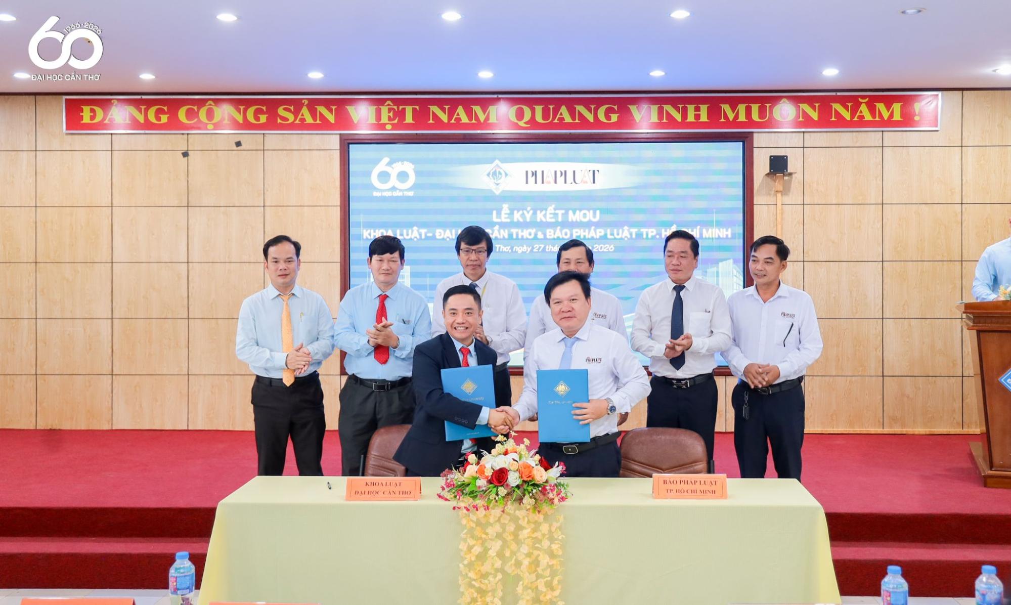 Trong khuôn khổ hội thảo, ĐHCT tổ chức lễ ký kết biên bản ghi nhớ hợp tác giữa Khoa Luật và Báo Pháp Luật TP. Hồ Chí Minh, đây là bước đi quan trọng nhằm tạo nền tảng thúc đẩy phối hợp hiệu quả hơn trong các lĩnh vực đào tạo, nghiên cứu và công tác thông tin, truyền thông trong thời gian tới. Nghi thức ký kết không chỉ đánh dấu sự phát triển trong quan hệ hợp tác giữa hai đơn vị mà còn góp phần tăng cường kết nối giữa cơ sở đào tạo luật với cơ quan báo chí chuyên ngành, qua đó thúc đẩy trao đổi học thuật, hỗ trợ nghiên cứu, nâng cao chất lượng đào tạo, đồng thời lan tỏa các giá trị pháp luật phục vụ cộng đồng.