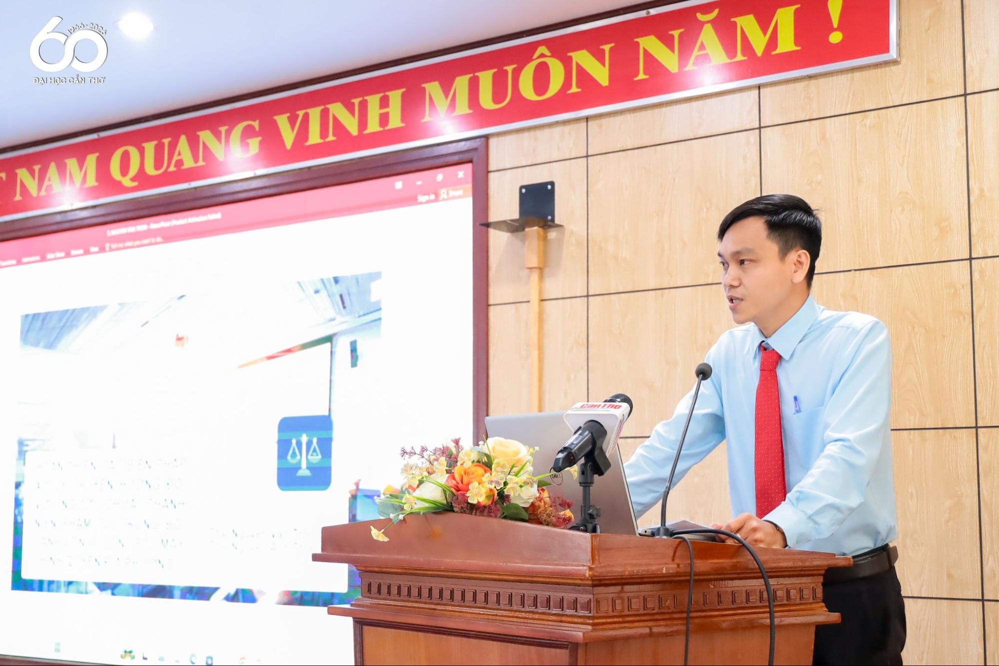 TS. Châu Hoàng Thân - Giảng viên Khoa Luật, ĐHCT trình bày tham luận “Trách nhiệm quản lý đất đai của cấp xã trong tổ chức chính quyền địa phương hai cấp”