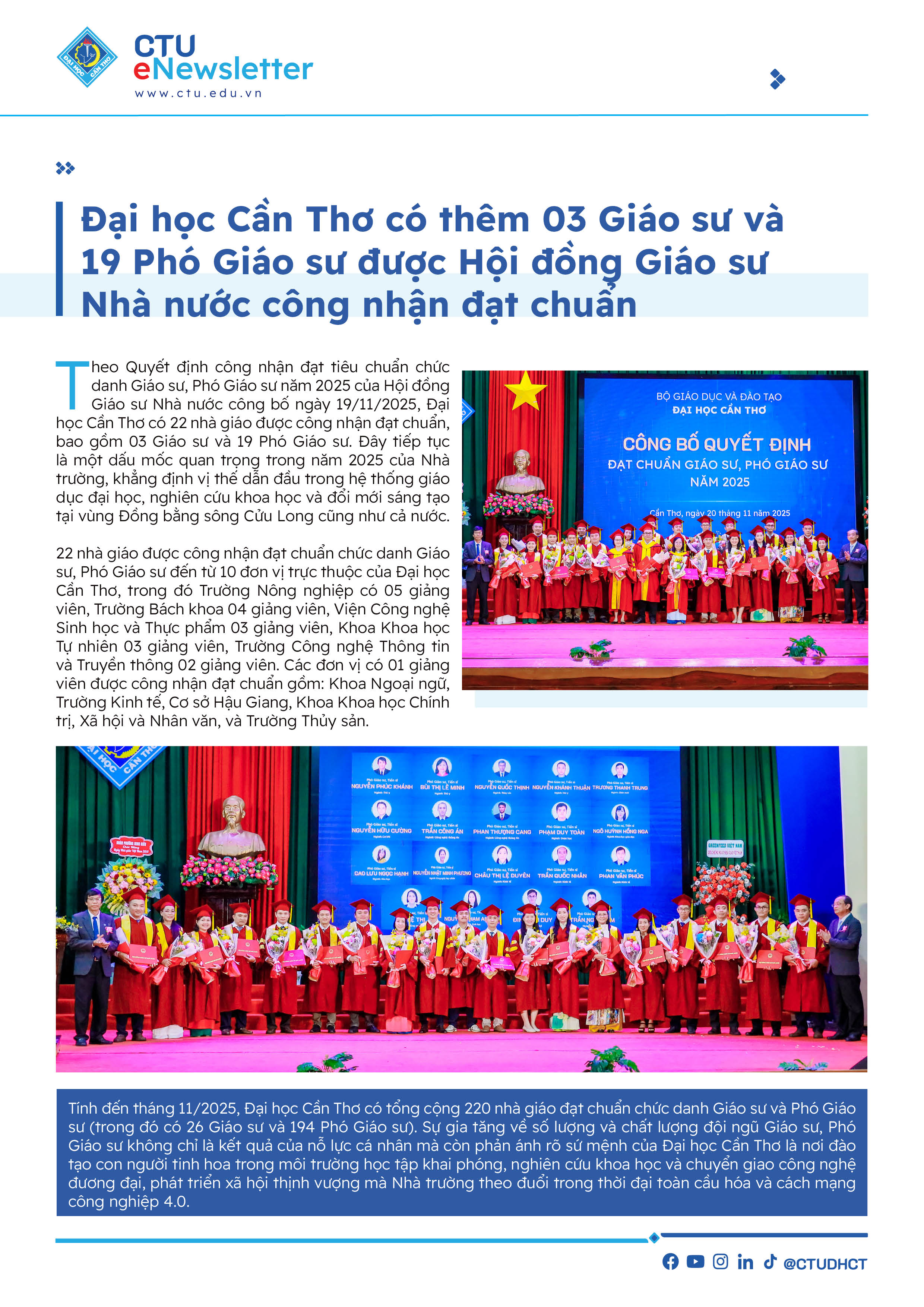 CTU eNewsletter 10 - Thêm 22 nhà giáo đạt chuẩn Giáo sư, Phó giáo sư