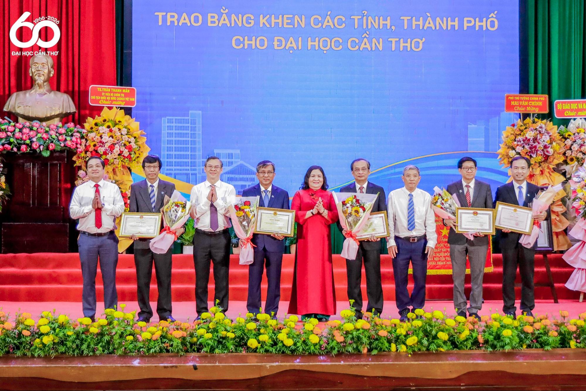 Đại diện Ủy ban Nhân dân thành phố Cần Thơ và các tỉnh: An Giang, Cà Mau, Đồng Tháp, Vĩnh Long trao tặng Bằng khen cho ĐHCT vì đã có thành tích đóng góp trong công tác đào tạo nguồn nhân lực, nghiên cứu khoa học, chuyển giao khoa học công nghệ trong khu vực