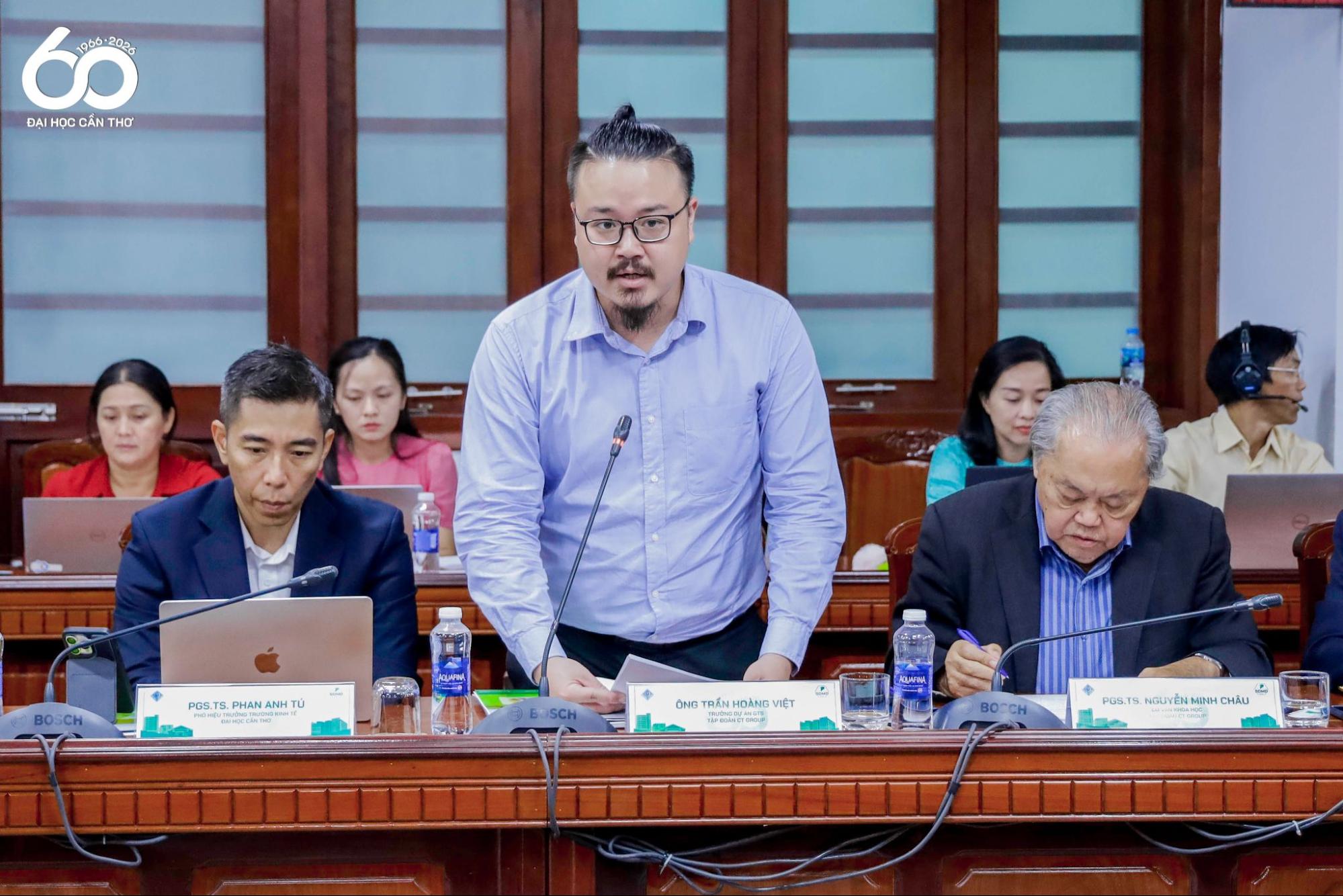 Ở góc độ công nghệ và đổi mới sáng tạo, đại diện Tập đoàn CT Group, ông Trần Hoàng Việt trình bày tham luận về các công nghệ chiến lược mang tính đột phá cho phát triển Đồng bằng sông Cửu Long, đồng thời nhấn mạnh vai trò tiên phong của ĐHCT trong hợp tác đào tạo, nghiên cứu và ứng dụng khoa học – công nghệ nhằm giải quyết các vấn đề cấp thiết của vùng
