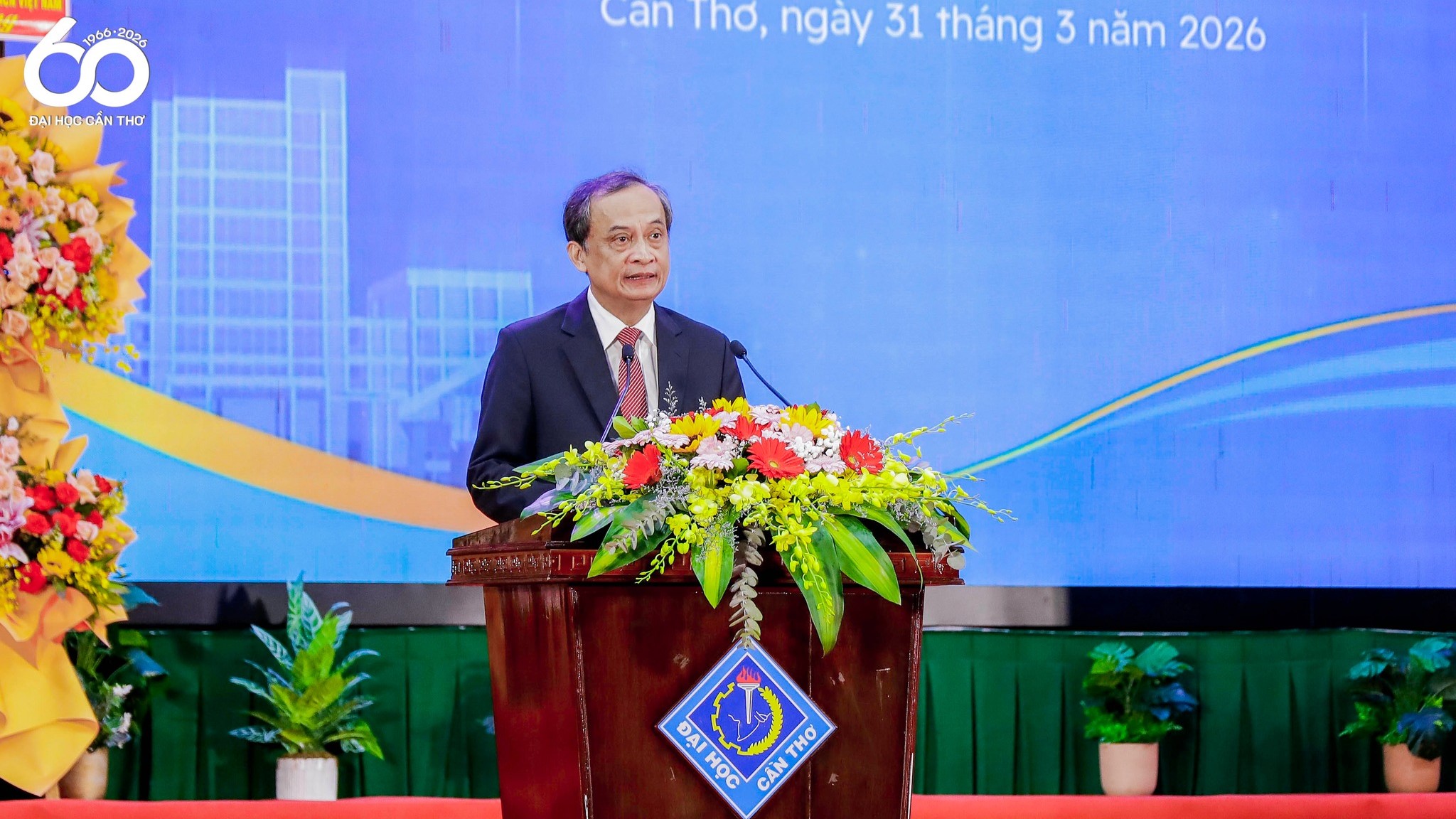 Sáng ngày 31/3/2026, Đại học Cần Thơ long trọng tổ chức Lễ Kỷ niệm 60 năm thành lập (31/3/1966 – 31/3/2026) – dấu mốc quan trọng trong hành trình xây dựng và phát triển của Nhà trường. Tại buổi lễ, thay mặt lãnh đạo Đại học Cần Thơ, GS. TS. Nguyễn Thanh Phương - Bí thư Đảng ủy đã trình bày Diễn văn kỷ niệm, ôn lại chặng đường 60 năm hình thành, phát triển và định hướng trong giai đoạn mới. Đại học Cần Thơ trân trọng giới thiệu toàn văn bài phát biểu.